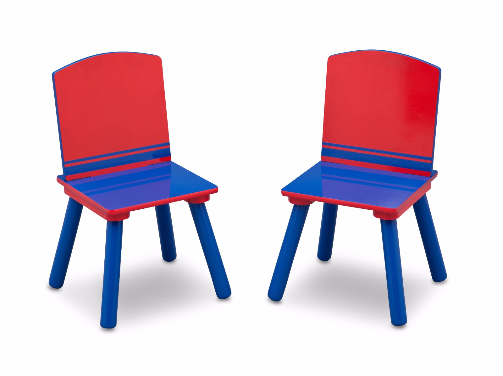 Skvele sa dopĺňa s výrobkami z kolekcie Disney. Drevený maľovaný stolček s stoličkami v univerzálnom modro-červenom prevedení.
