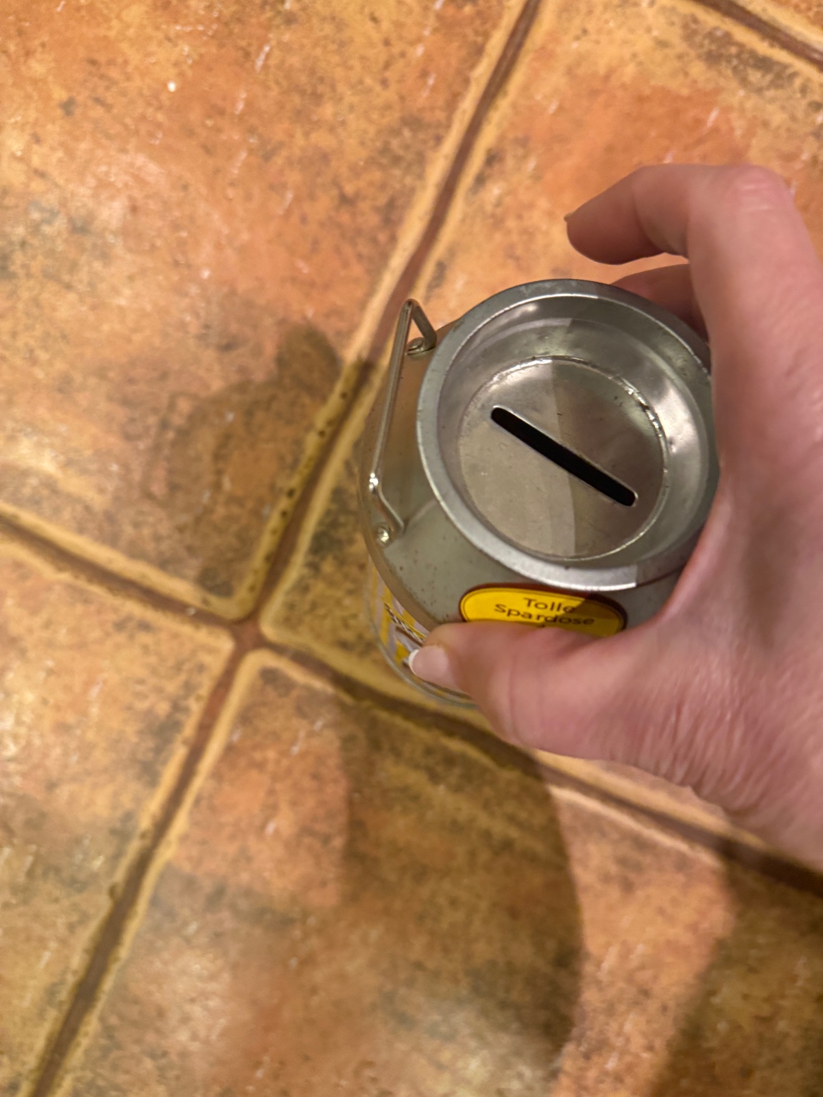 • originálna kovová pokladnička v tvare malej kanvy