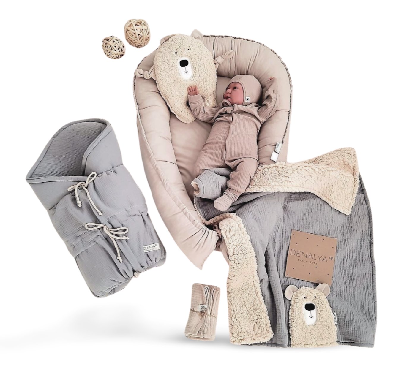1. Hniezdo pre bábätko 100% bavlna latte (béžová) , výplň antialergické rúno - obojstranne použiteľné, otočíte si na stranu, ktorá Vám vyhovuje.