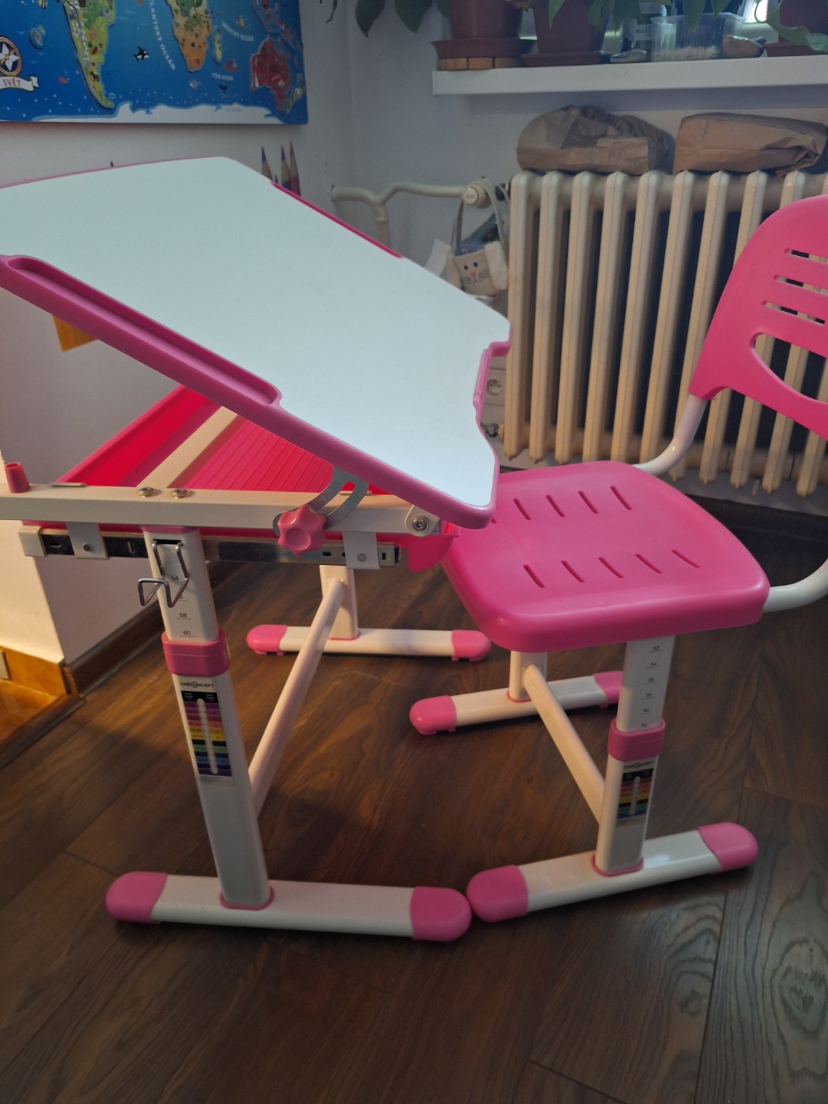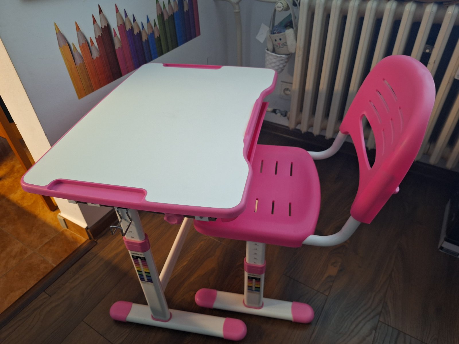 Predám rastúci stôl so stoličkou, krásna ružová farba. Stôl okrem rastu sa dá nakloniť a zafixovat. Bez poškodení. Málo používané, urobili sme skôr detskú izbu ako sme plánovali. Osobny odber Bratislava a po dohode aj okolie.