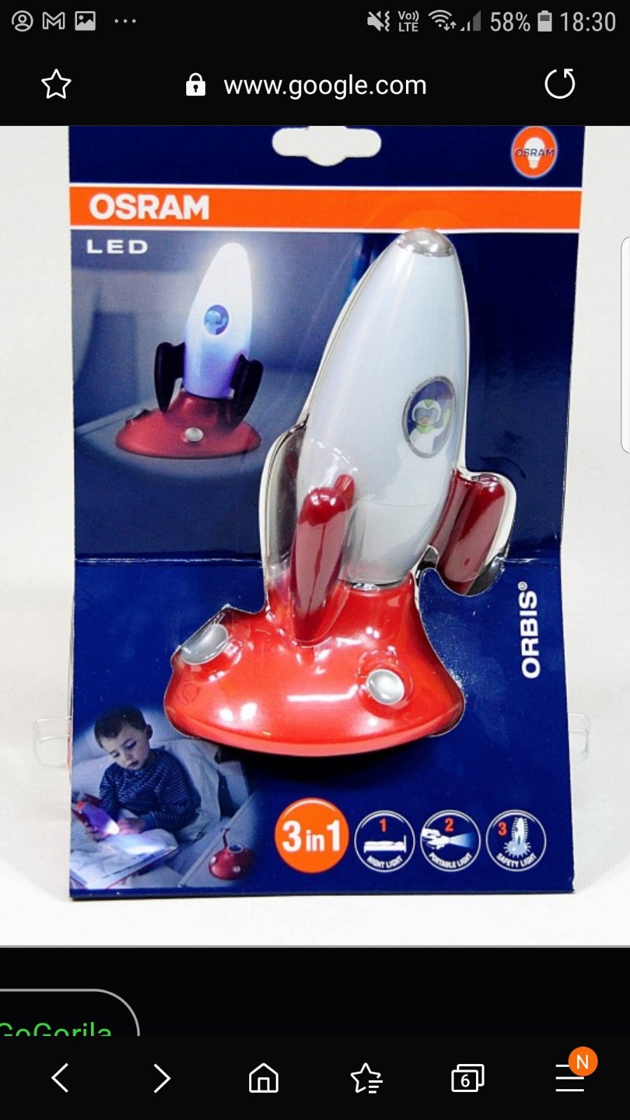 Osram noční LED lampička ORBIS, 1,5W 230V 700K 18lm, raketa.