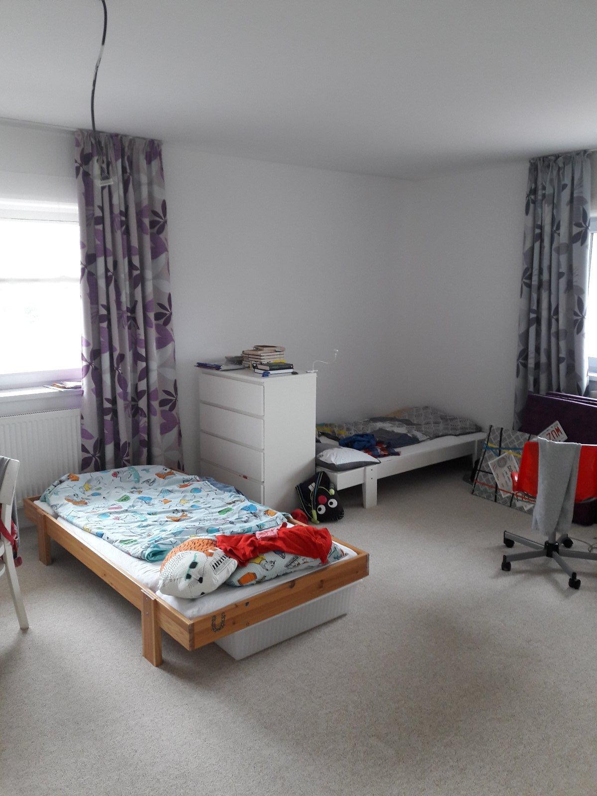 Záves je ušitý z kvalitného nepriehľadného materiálu. Hore je nariasený a sú v ňom našité úchytky na koľajnice. Farba závesu je slabo šedo modrá, sú na ňom kvety v odtieňoch šedej a svetlo modrej. Záves na spodnej foto na pravo. Záves je na 2 m okne. K dispozícii je až keď kúpim nový. Používa sa iba 3 roky. Vymieňame ho lebo sme rozdelili deti do dvoch izieb a v tejto izbe máme dva rozdielne.