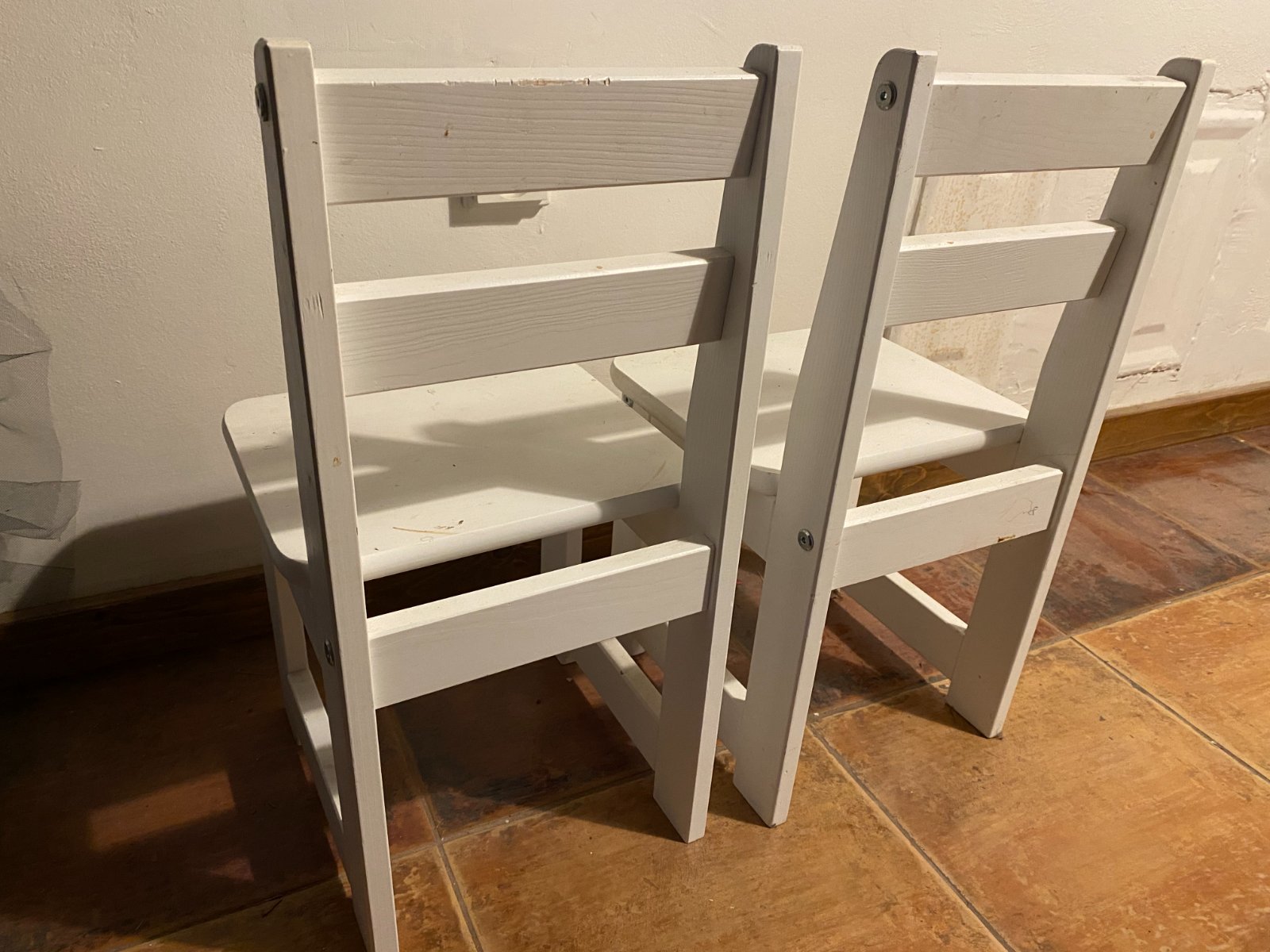 Drevené detské stoličky v celkom zachovalom stave, 2 kusy po 15e.
