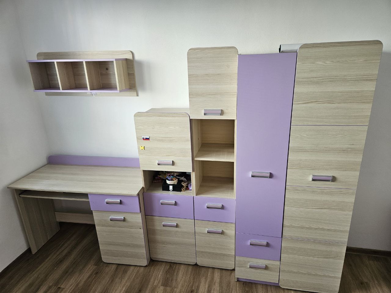 Predam detsku dievcensku sektorovu izbu podla fotiek. 1x pisaci stolik s odkladacim priestorom, 2x policove skrine, 1x skrina na saty, 1x postel s matracom vratane ulozneho priestoru, 1x polica na knihy. Nabytok je v peknom stave.