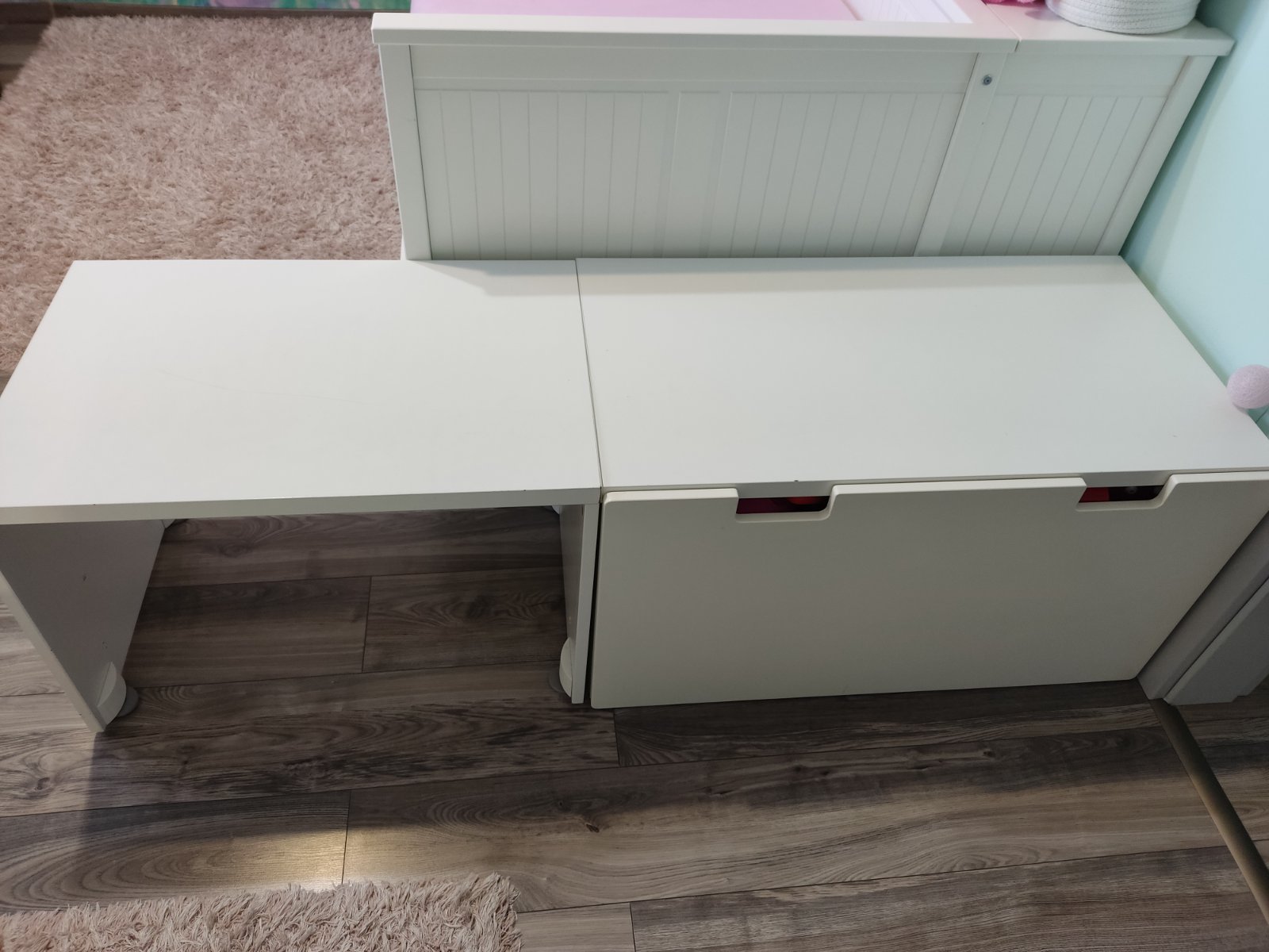 Masívna lavica s velkym uloznym suflíkom na hracky. Rozmery su na fotke. Chyby vid foto.