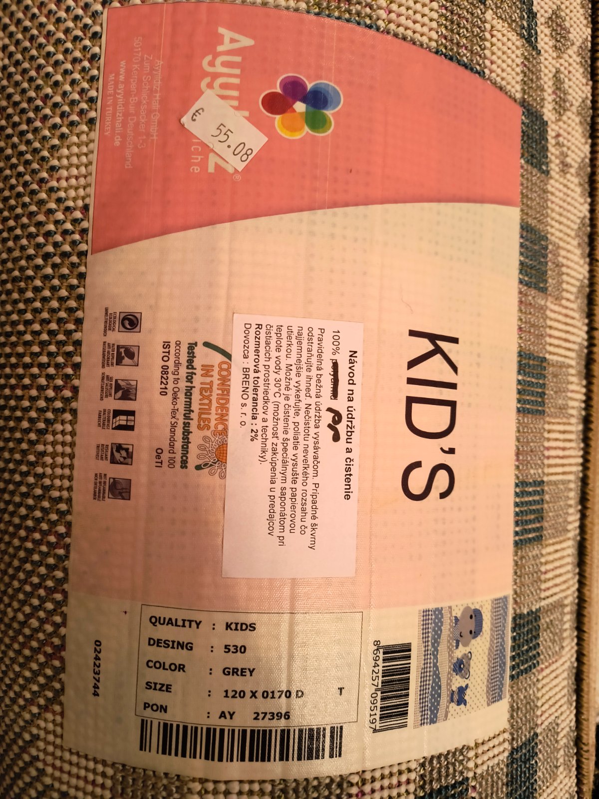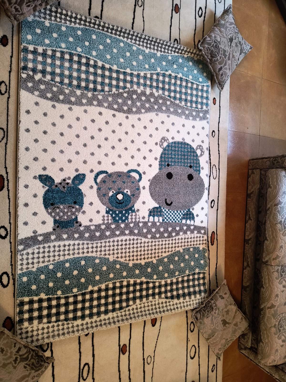 Na predaj nový koberec 120x170 pre deti modro šedej farby..