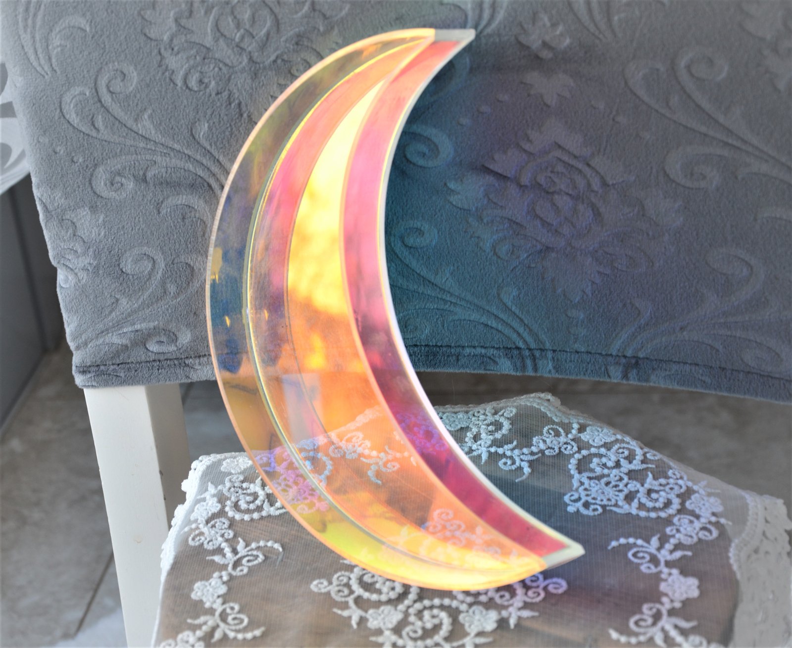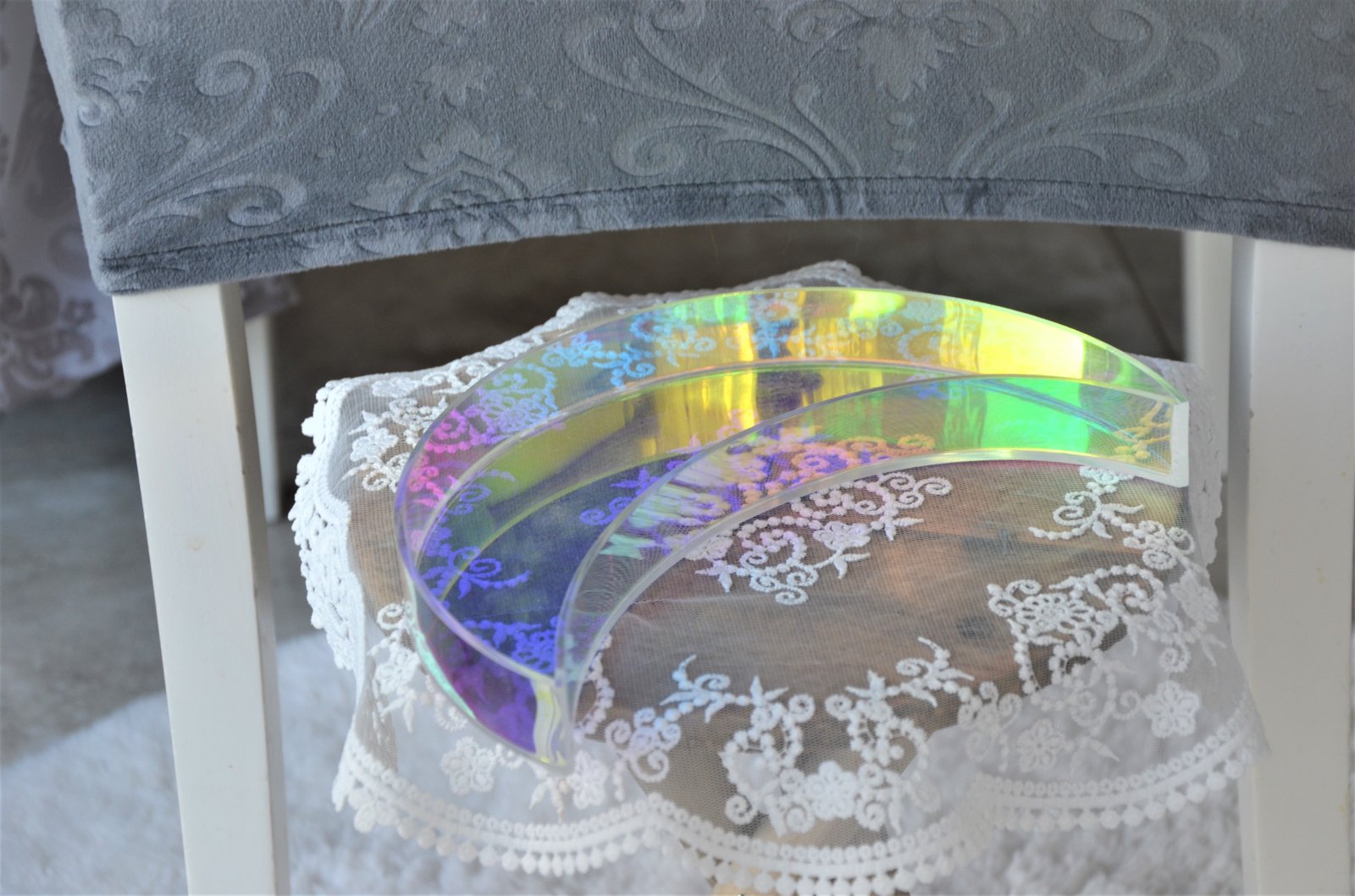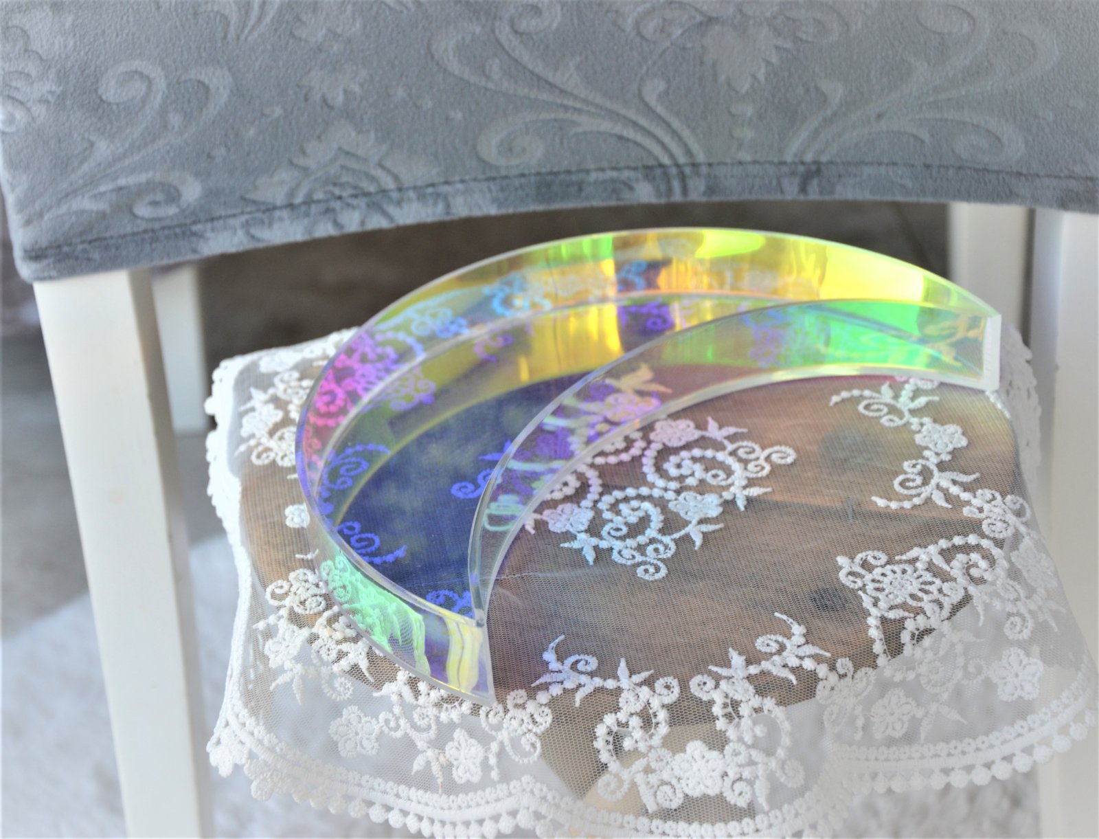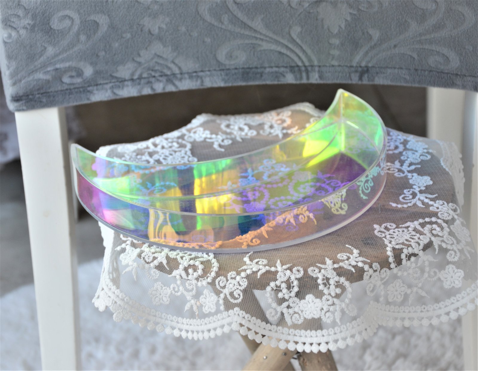 plastový,s AB odleskami-krátko použitý-v tvare polmesiaca,rozmer 22,5x12cm,výška 3cm..kuk aj na iné moje inzeráty