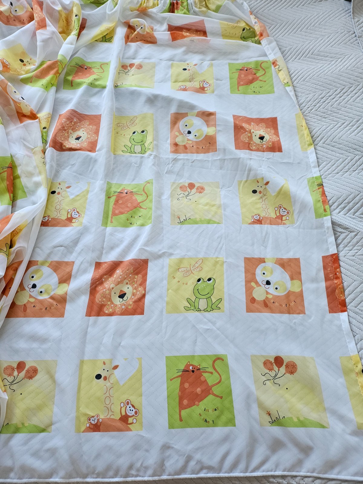 Predám používanú záclonu do detskej izby, vzor zvieratká safari. Rozmer (1ks): šírka cca 2,65 m, dĺžka cca 1,73 m. Mám 2 ks (pravá a ľavá strana). Spôsob vešania na foto, treba k tomu háčiky plastové, pár ks viem priložiť.