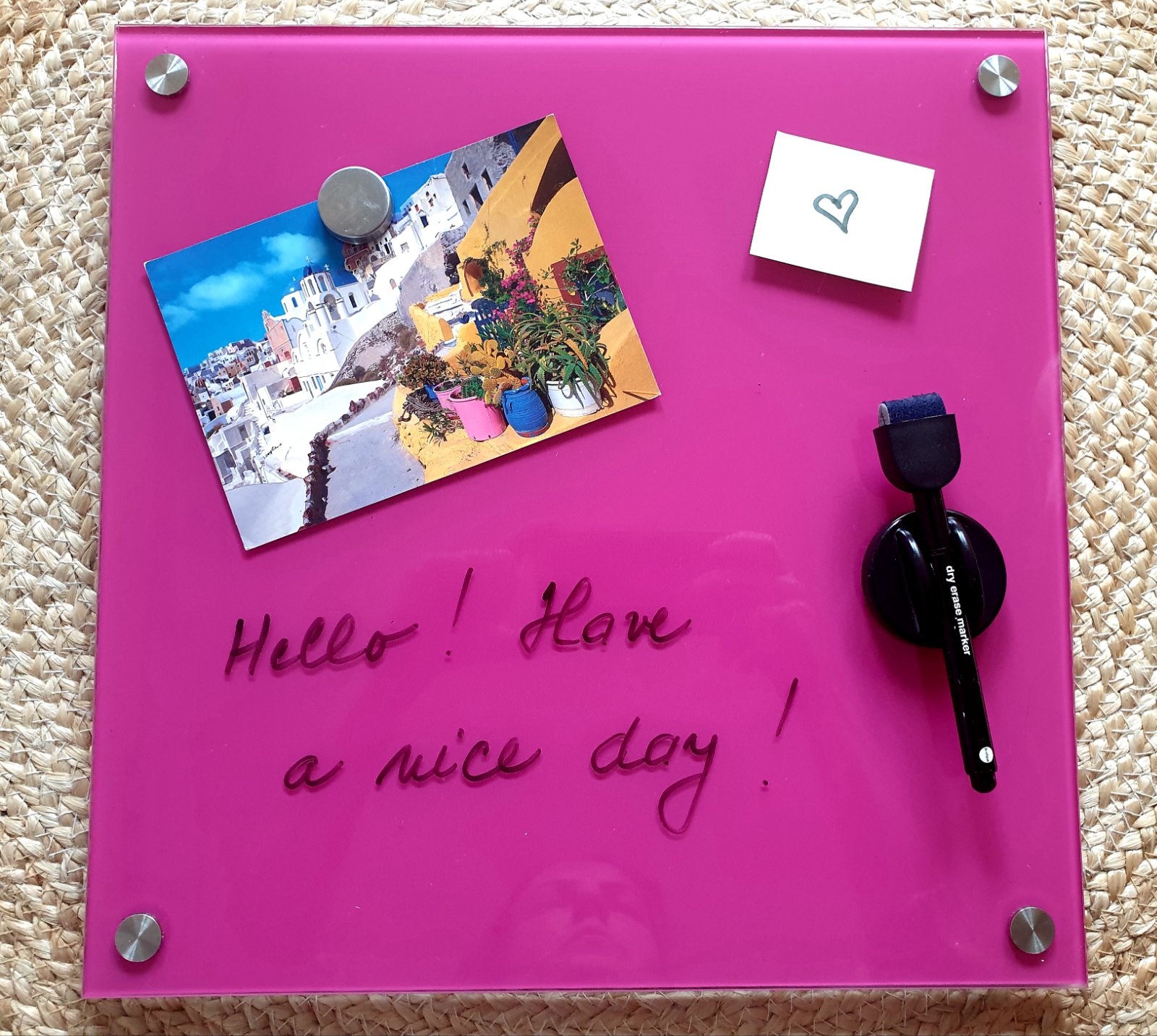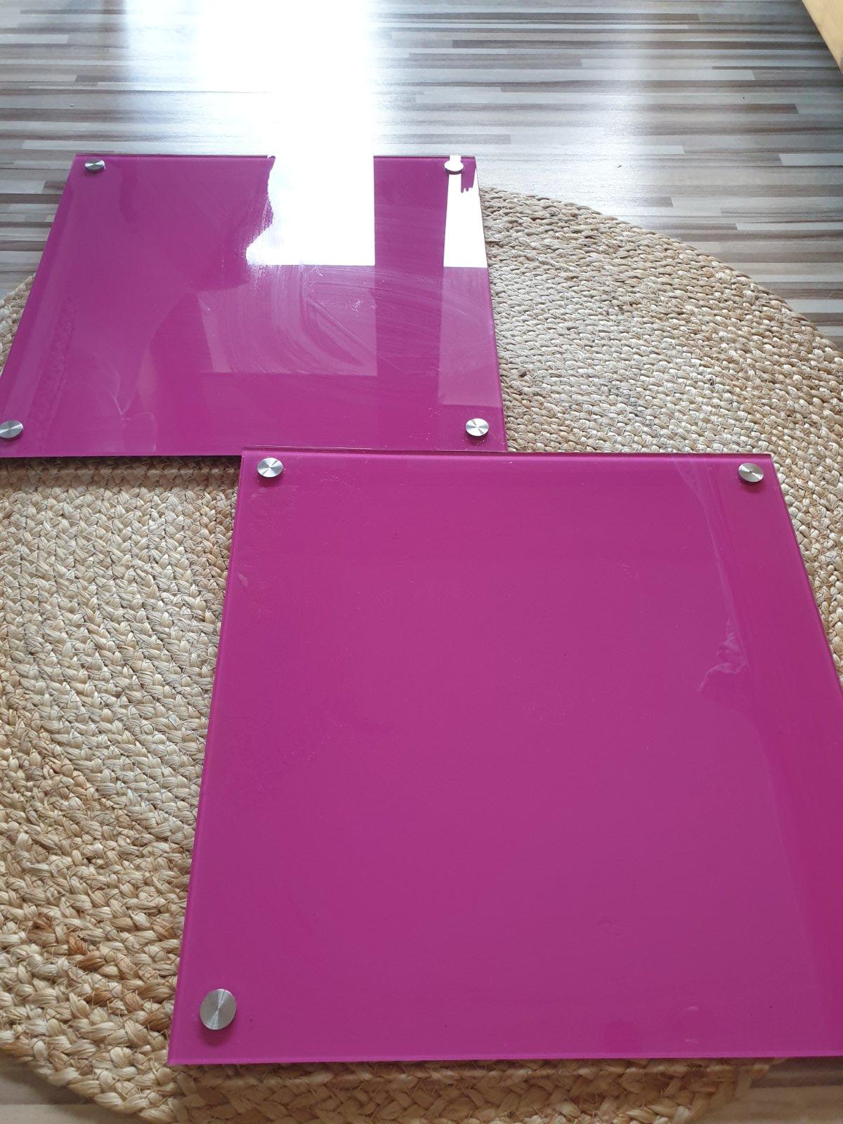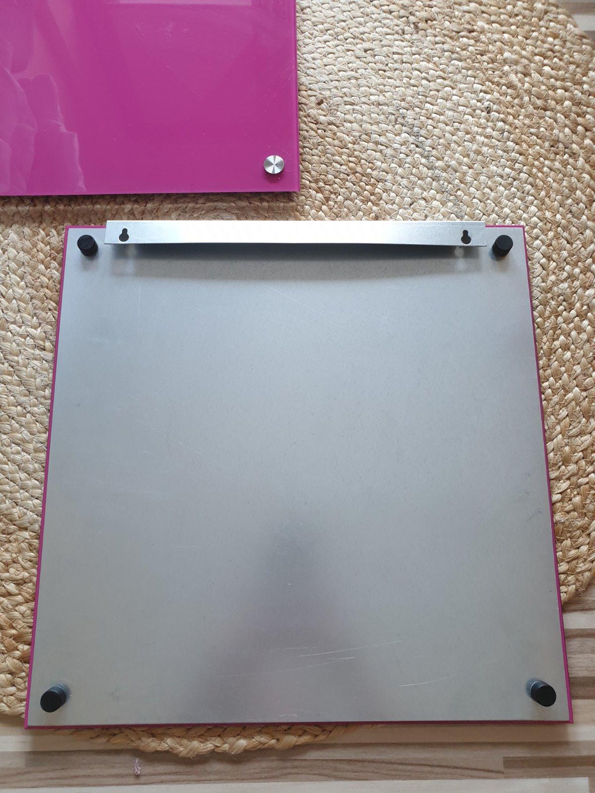 2 x sklenená magnetická tabula s magnetmi, pekný doplnok do dievčenskej izby alebo pracovne, dajú sa zavesiť na stenu, dá sa ne kresliť a pripinať odkazy a pod... Rozmer tabuľe je 35 x 35 cm. Cena spolu za 2 ks.