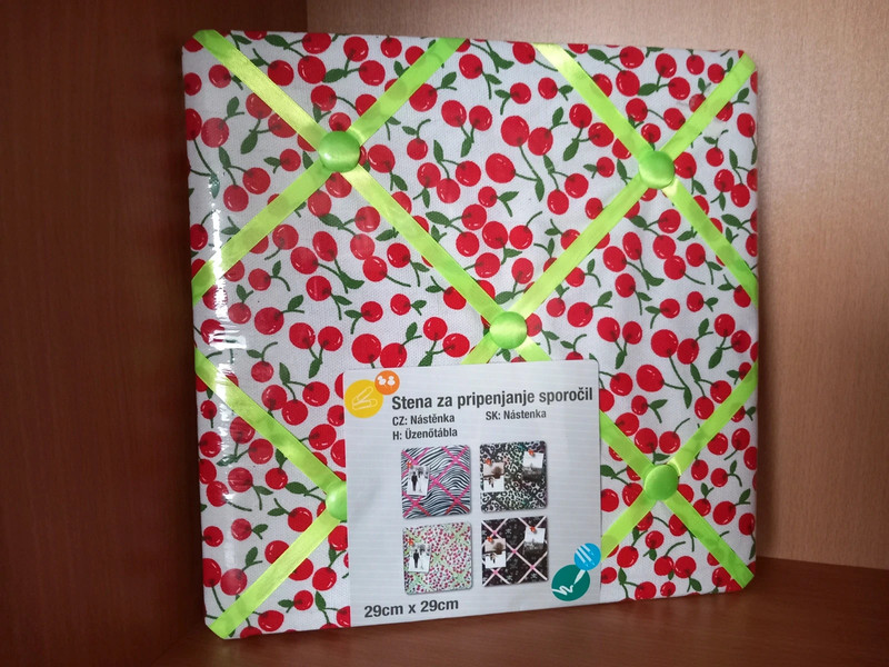 Nová, stále pôvodne zabalená látková nástenka v rozmere 29x29 cm na odkazy, fotky, ktoré je možné jednoducho zasúvať medzi stužky, alebo pripínať špendlíkmi. Nástenku je možné voľne oprieť, alebo zavesiť, zozadu má 2x závesné uško. Váhovo ľahká.