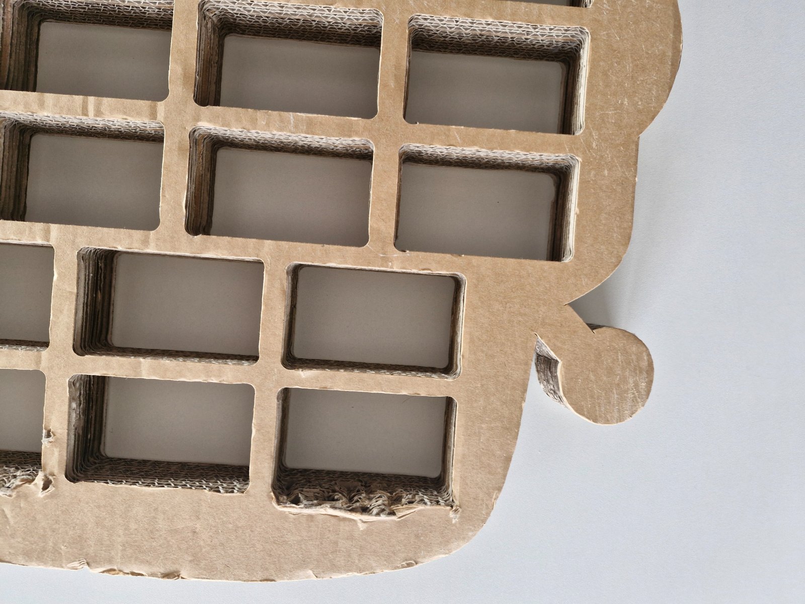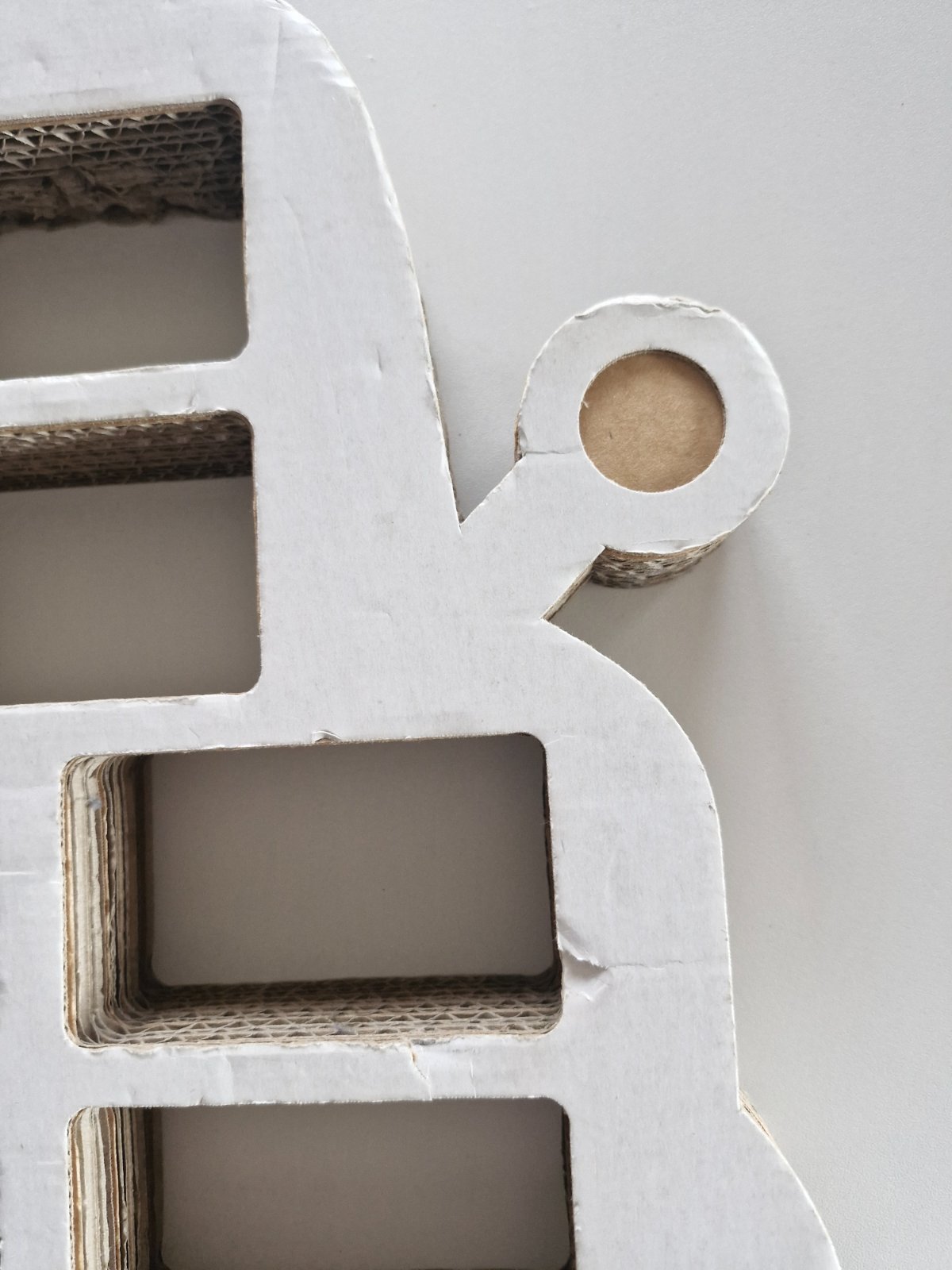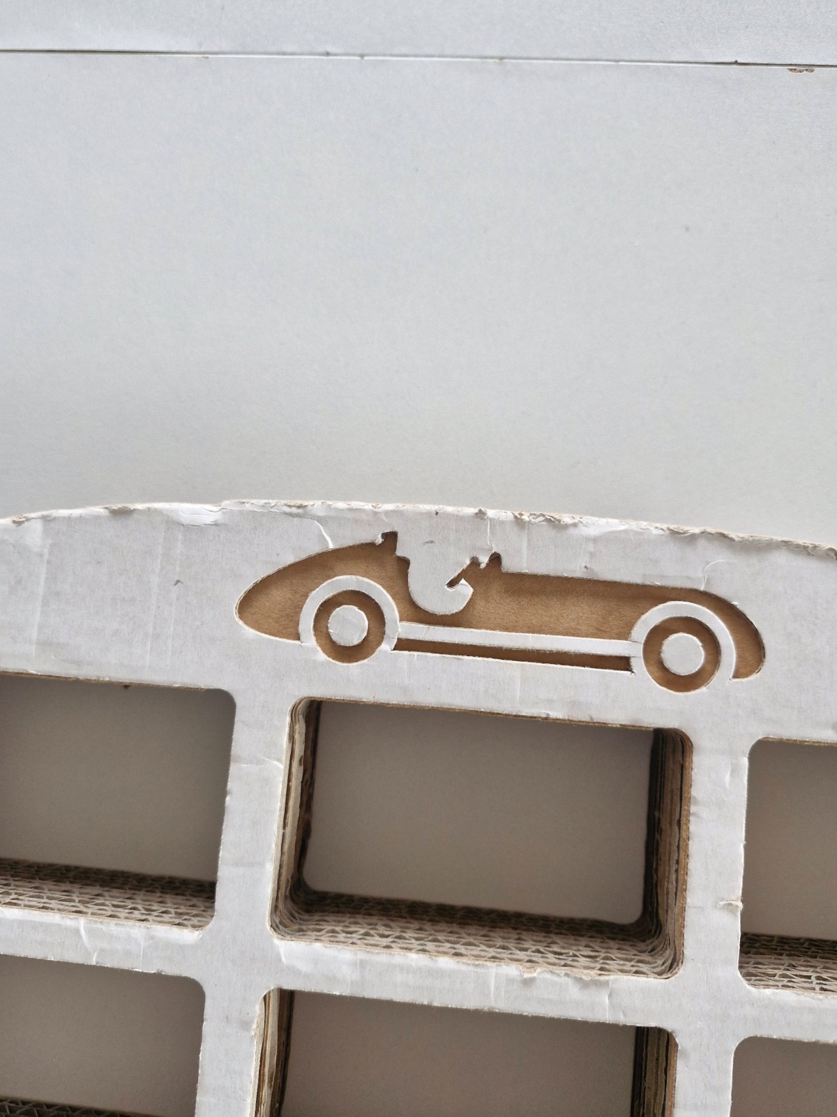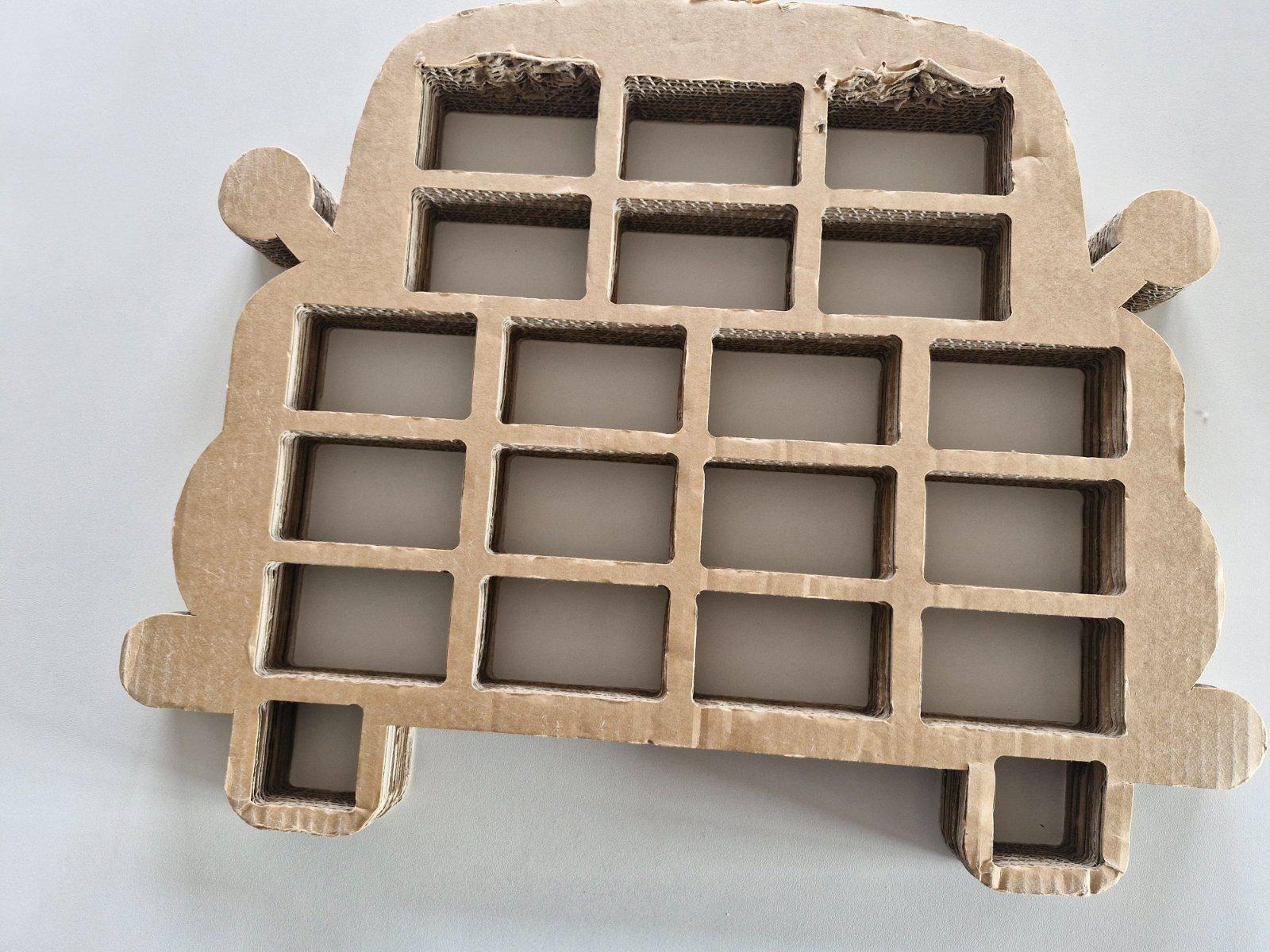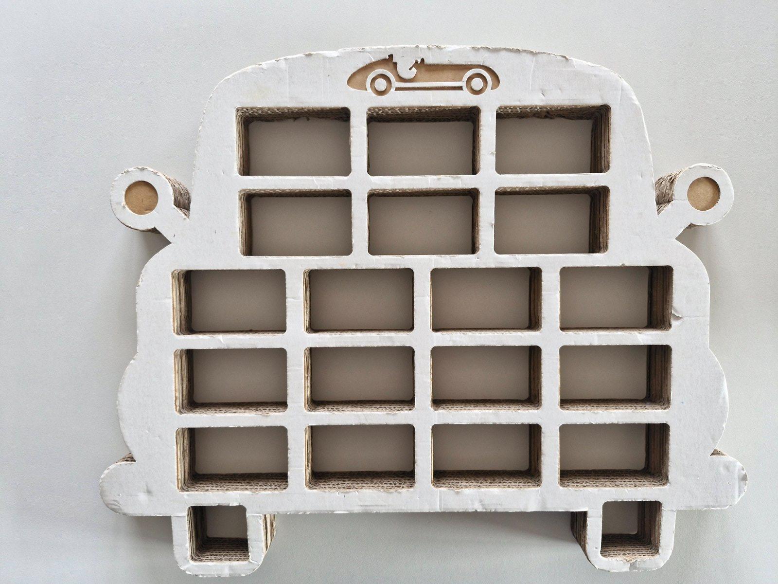 Veselá polica na autíčka domácej výroby. Zadnú stranu tvorí latovková doska, priečinky na autá sú pevné papierové kotule natreté akrylovou farbou, pripevnené kvalitným lepidlom na drevo. Polica je ...