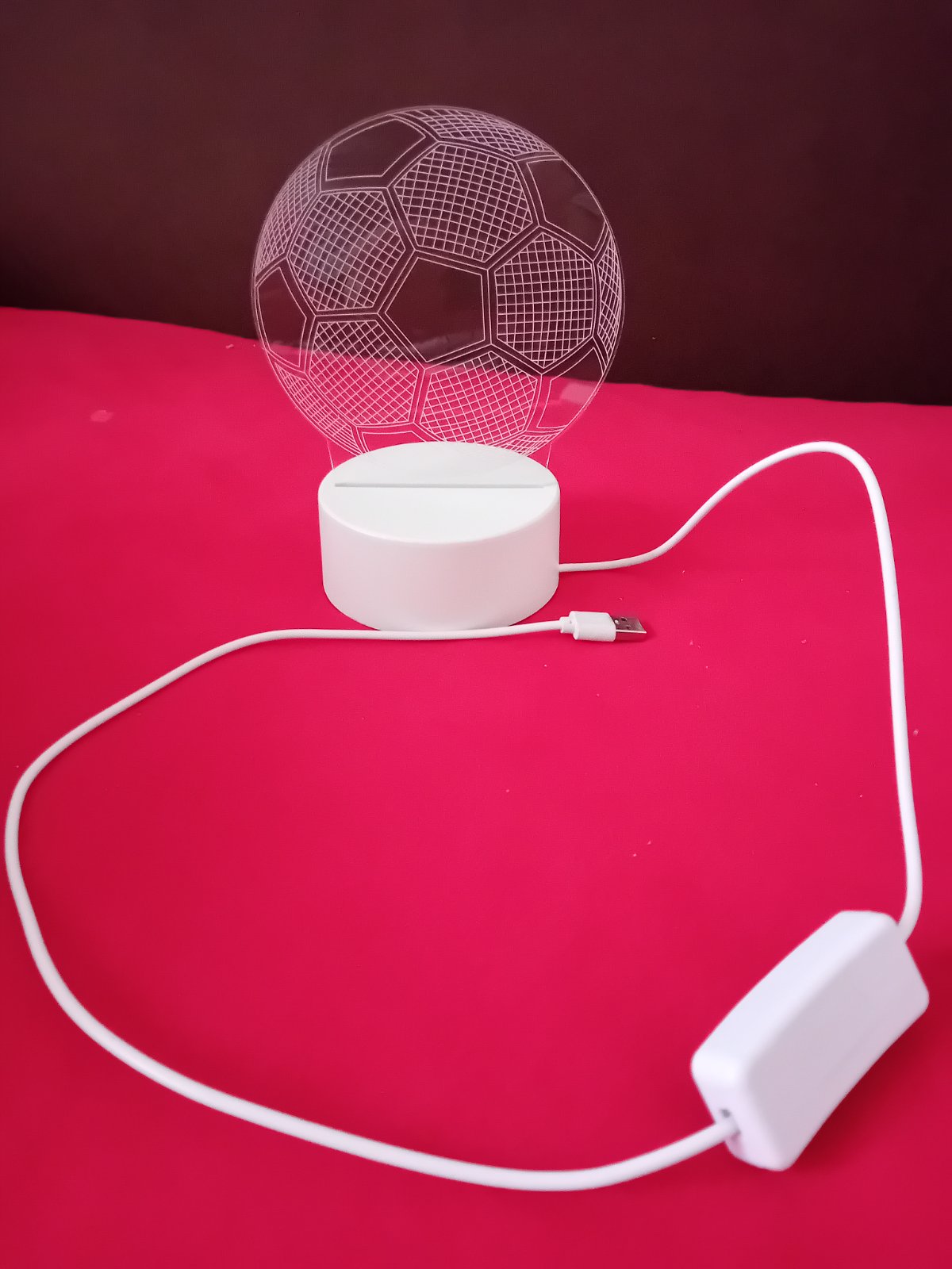 Predám lampičku do chlapčenskej izby,motív futbalová lopta,plochá svietiaca časť, priemer 15cm,podstavec priemer 10cm,dĺžka kábla 85cm.Veľmi malo používanú, 100% stav