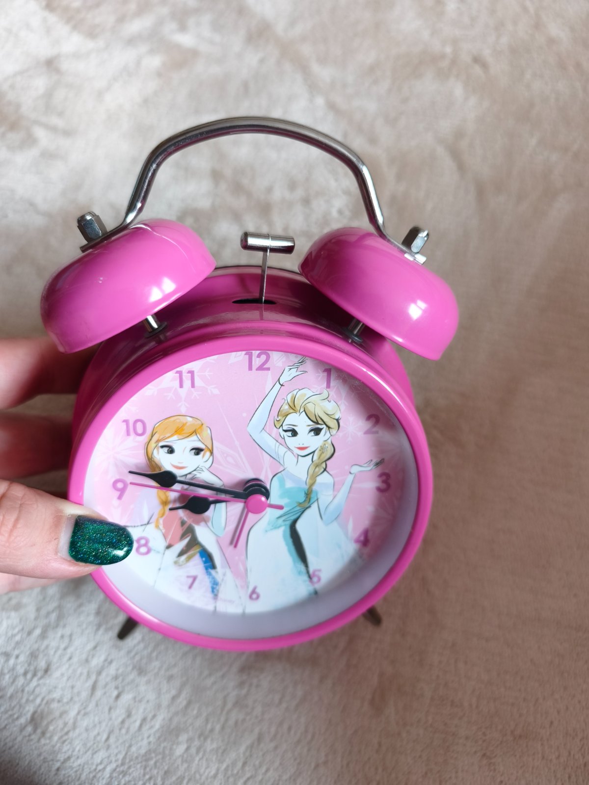 Budík v 100% stave, výška 14 cm, budík sa ruší stlačením hlavy, ktorá sa rozsvieti. Málo používany. My sme ho kúpili za cca 33 eur. Predáva sa bez bateriek. Idú tam 2 x AAA