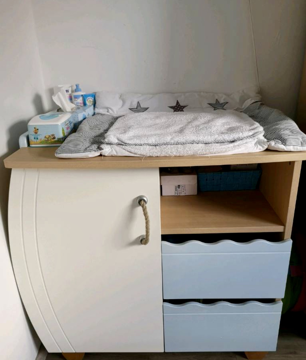 Darujem k tomu aj úplne novú poličku nad pultík je na foto z obchodu a aj dekorácie v námorníckom štýle