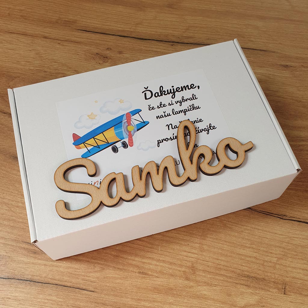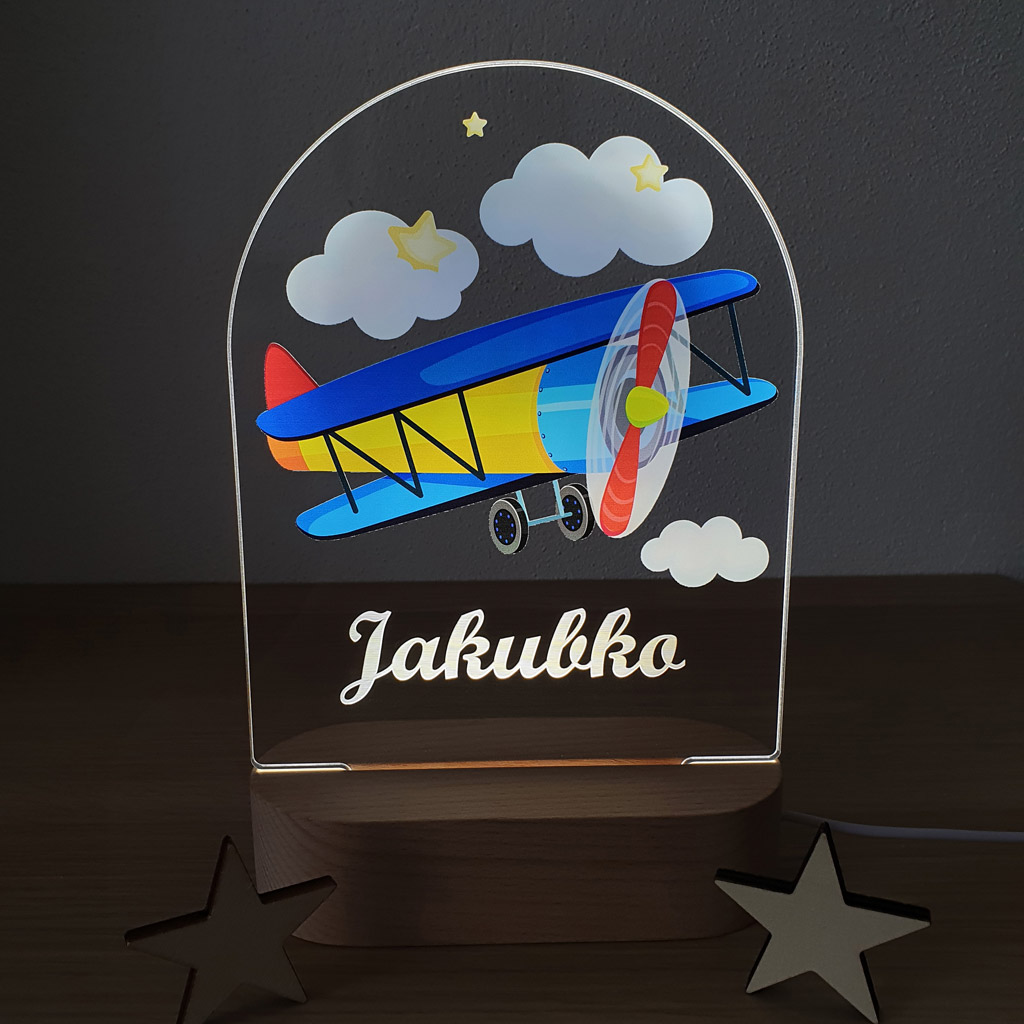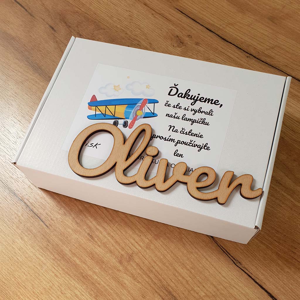 LED nočná lampa s vlastným menom dieťatka a motívom lietadla rozžiari nielen detskú izbičku, ale aj očká detí. Je to tiež ideálny darček k narodeniu dieťatka, na krstiny, narodeniny, či meniny.