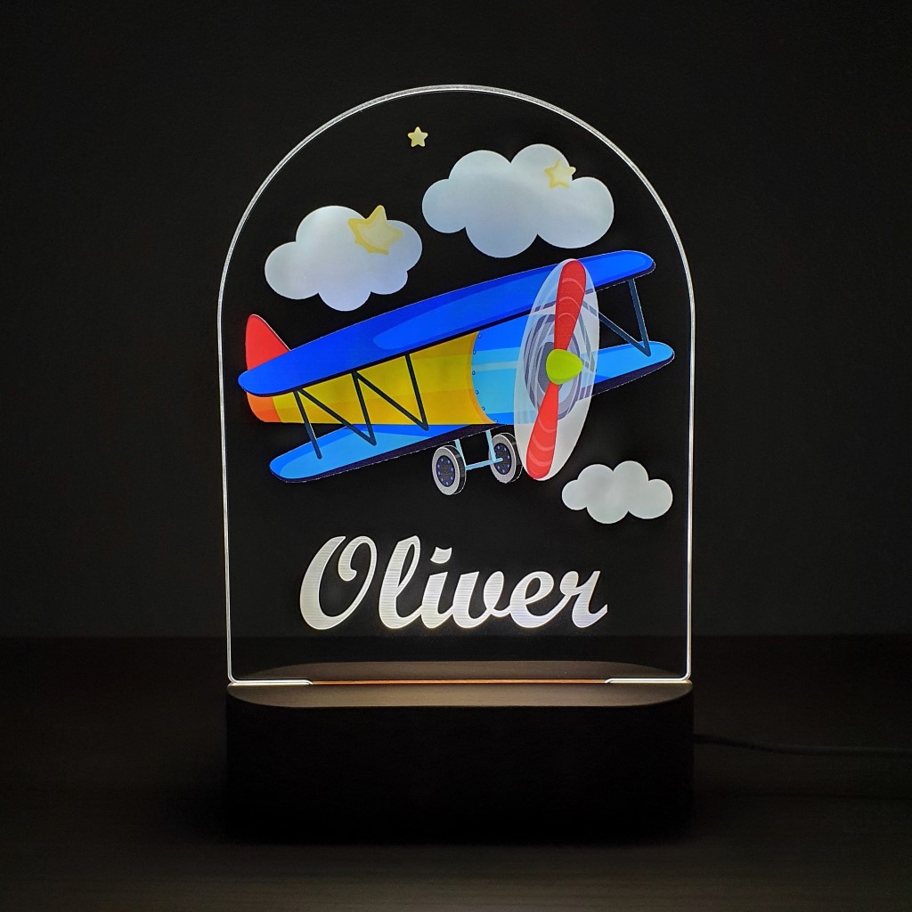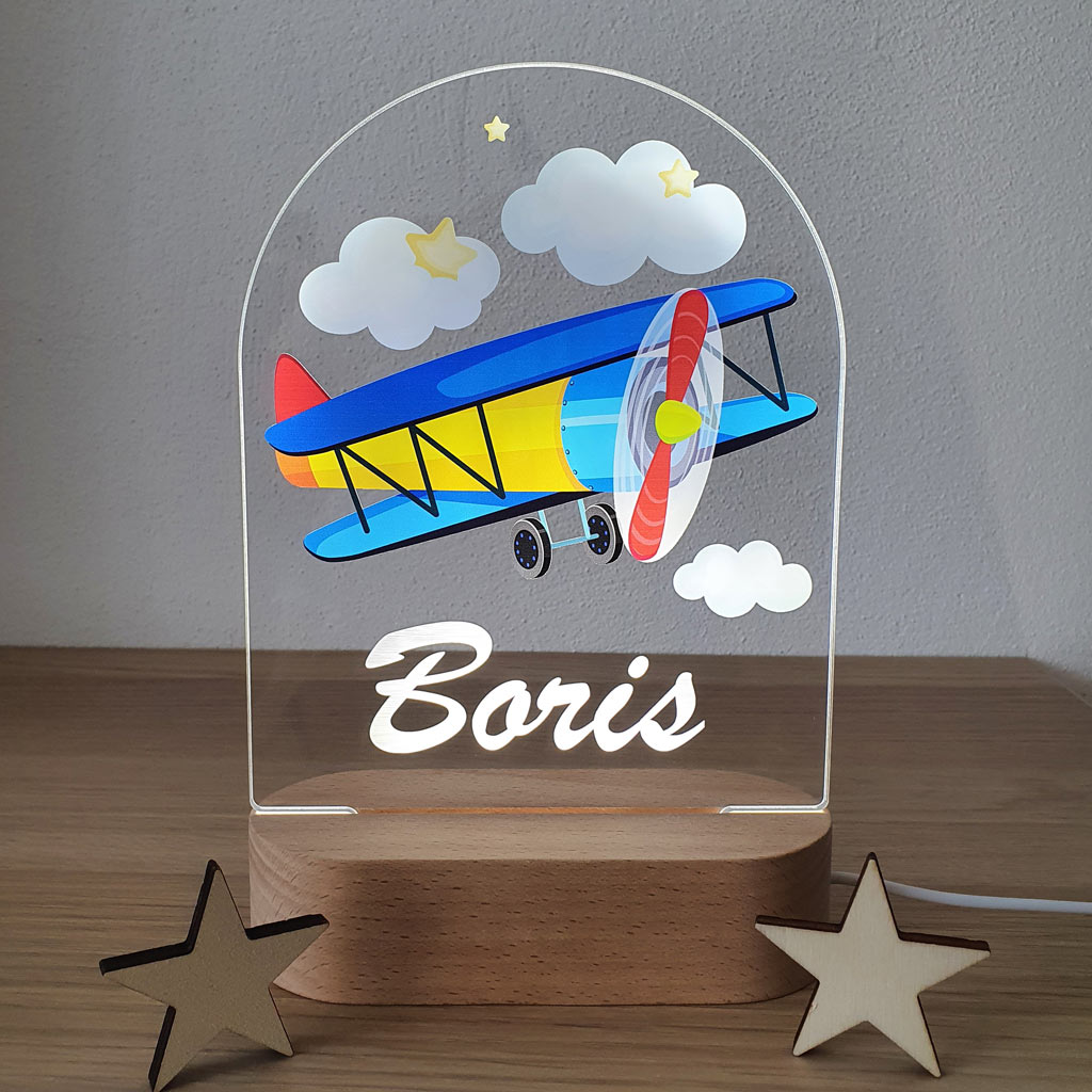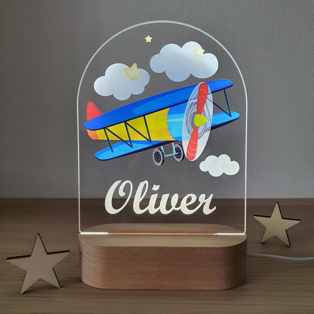 LED nočná lampa s vlastným menom dieťatka a motívom lietadla rozžiari nielen detskú izbičku, ale aj očká detí. Je to tiež ideálny darček k narodeniu dieťatka, na krstiny, narodeniny, či meniny.