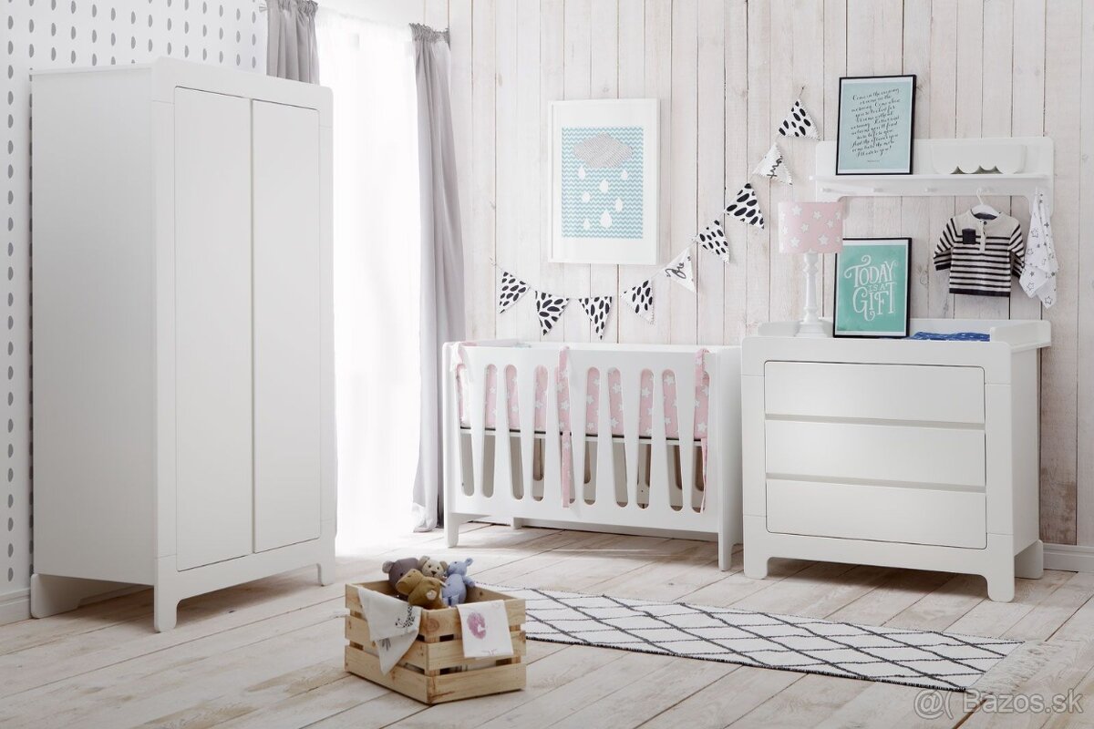 Predám nábytok do detskej izby z kolekcie Pinio Moon, ktorá sa vyznačuje moderným, jednoduchým a čistým dizajnom. Nábytok je vyrobený z lakovaného MDF (drevovláknitá MDF doska) so samozatváracím systémom, ktorý zabraňuje buchnutiu. Nábytok je certifikovaný pre bezpečné používanie deťmi. Vysoko kvalitný a pevný.