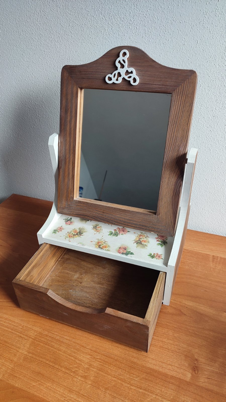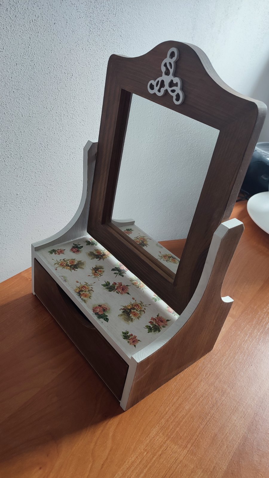 Toaletné drevené zrkadielko s jednou zásuvkou robený na mieru