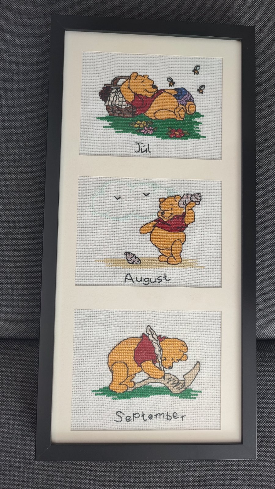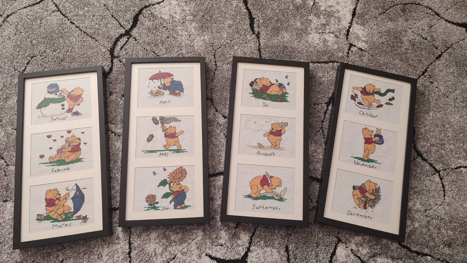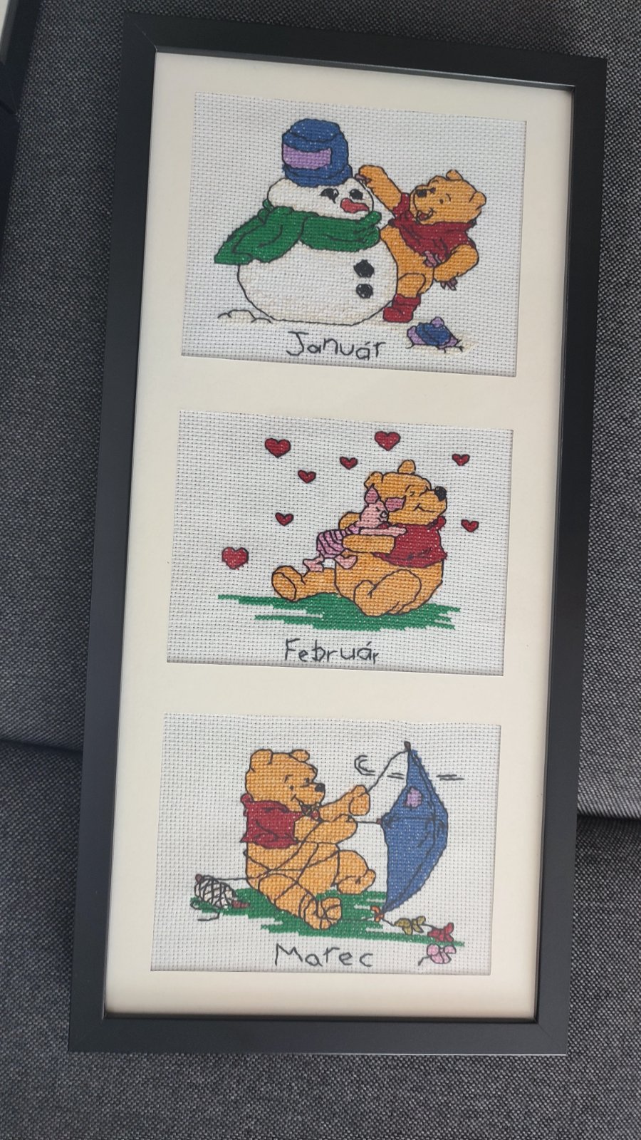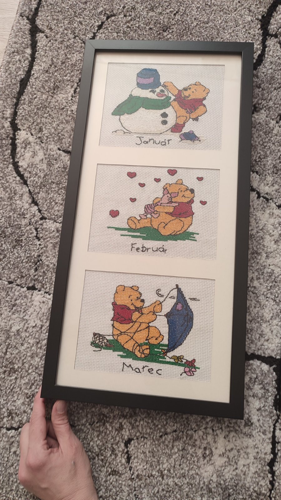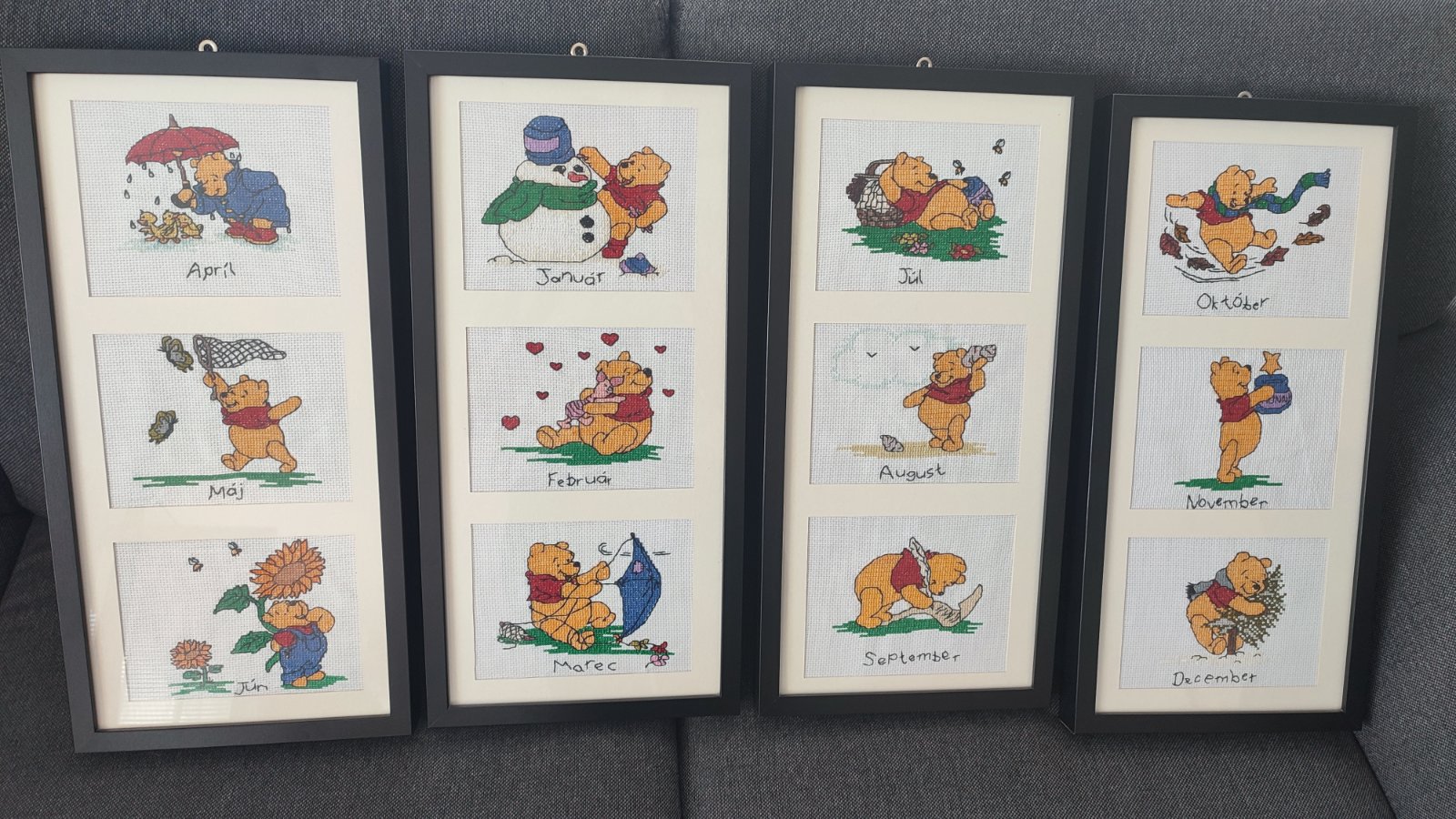Ponúkam mnou vyšívané obrazy Macka Pu.