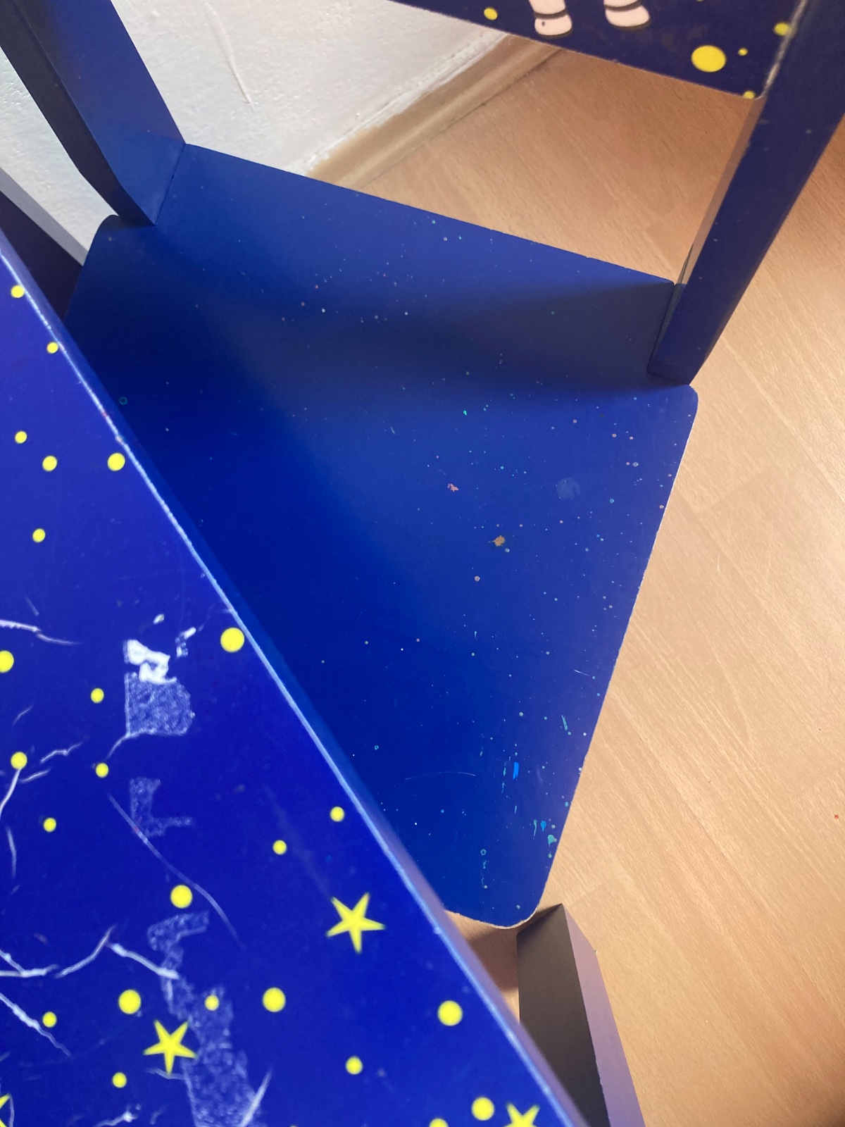 Používany detsky stolik s dvoma stolickami. Plne funkcny, ma esteticke chyby sposobene pouzivanim.
