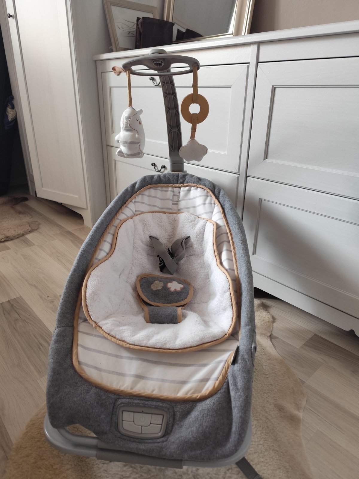Detské kresielko Ingenuity. Osobný odber Poprad. V rámci PP viem doviezť. Hrá melódie, regulovateľná hlasitosť, vibračná funkcia, dá sa zložiť, držiak s hrkálkami, podpera na zablokovanie hojdania, odnímateľný poťah, čistenie: pranie v práčke, do 18 kg.