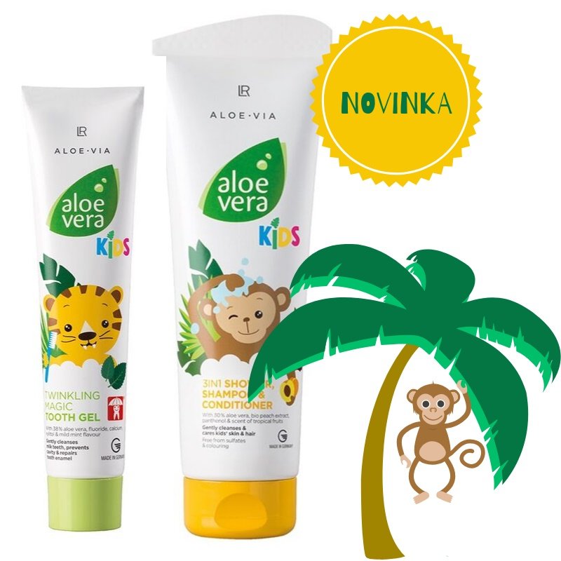 V sérii je zubný gél (50ml) pre deti od 0-6 rokov a 3v1 Šampón, kondicionér a sprchový gél (250ml) pre deti od 3-12 rokov.