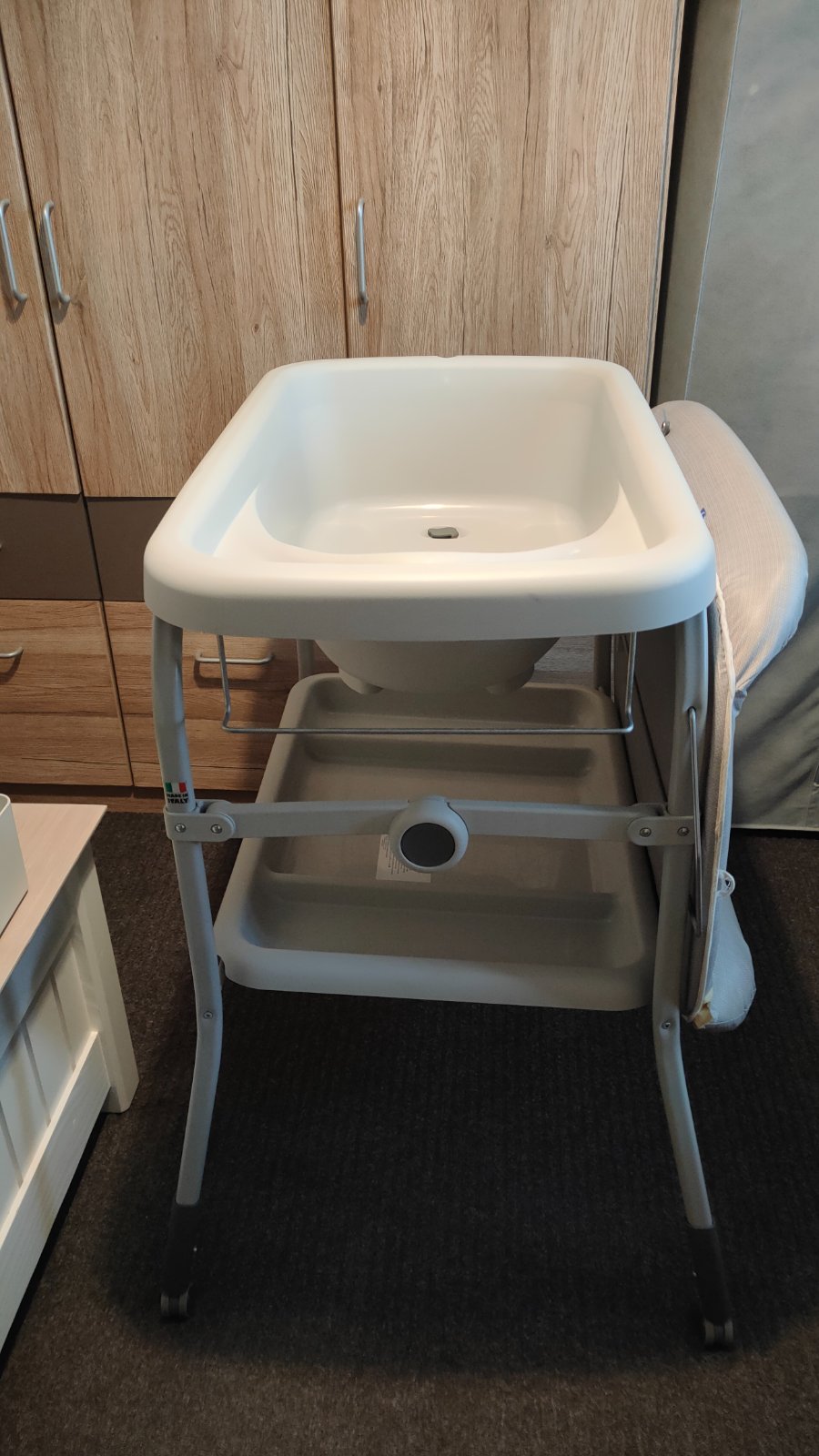 Predám multifunkčný prebaľovaci pult Chicco s vyberatelnou samostatnou vaničkou s výpustom, s odkladacou policou a s bočnými krabičkami na odkladanie veci na prebaľovanie. Pult sa ľahko prenáša aj vďaka kolieskam, relatívne skladný po zložení. Pult je pevný a stabilný.