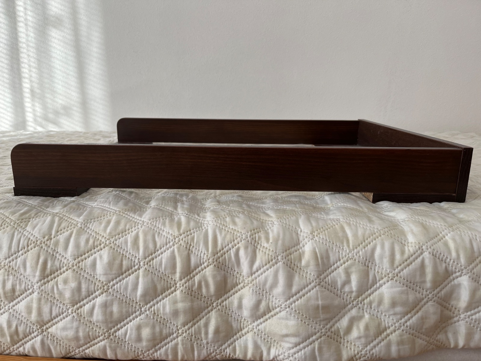 Predám ľahký drevený prebaľovací pult na komodu, pasujú do neho štandardné prebaľovacie podložky.
