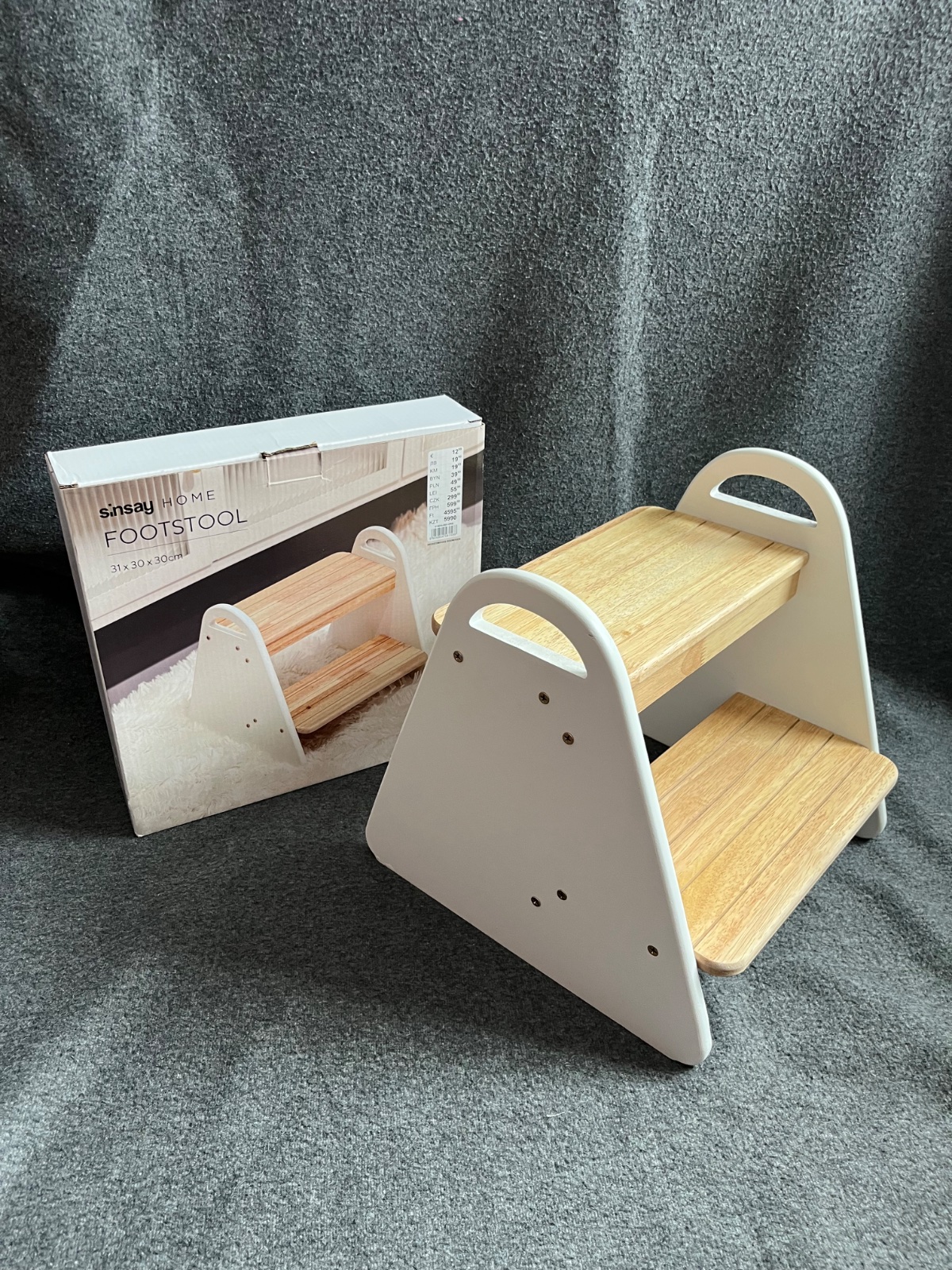 Nové drevené schodíky. Rozmer 31x30x30cm. Len sme ich podskladali, nakoniec nevyužili.