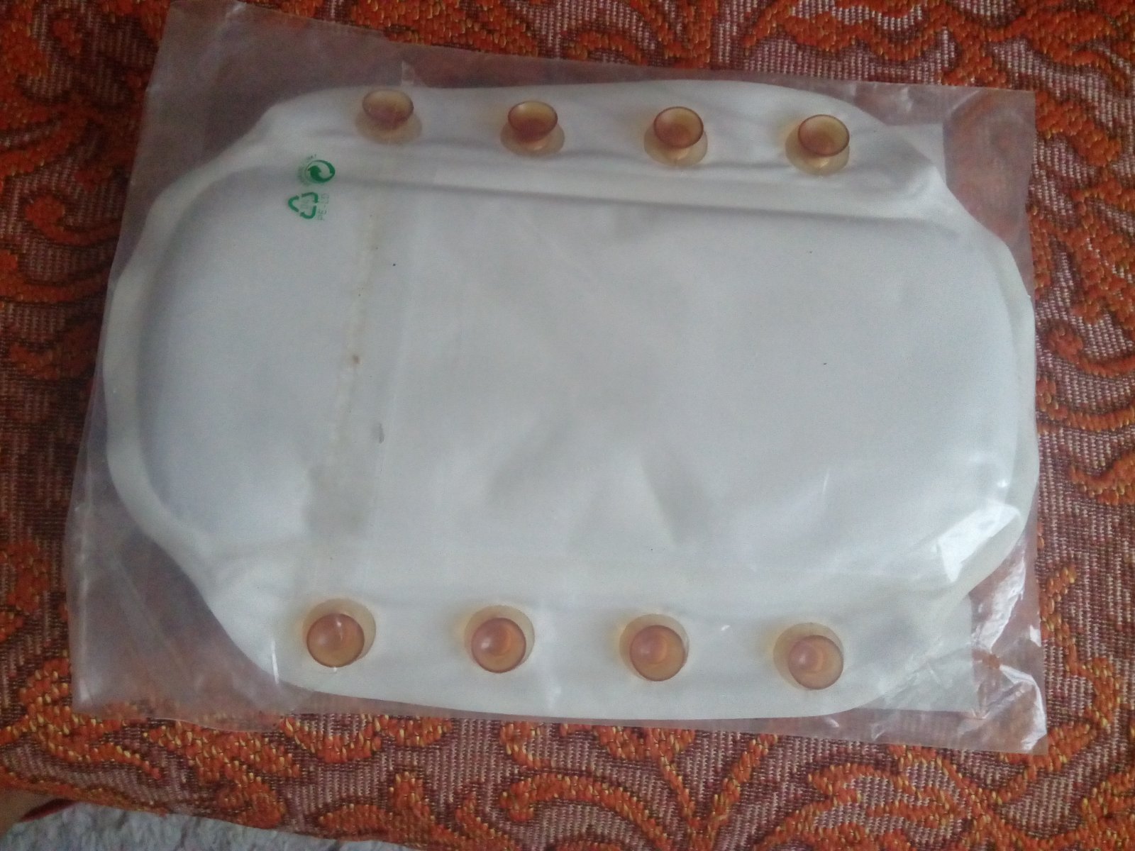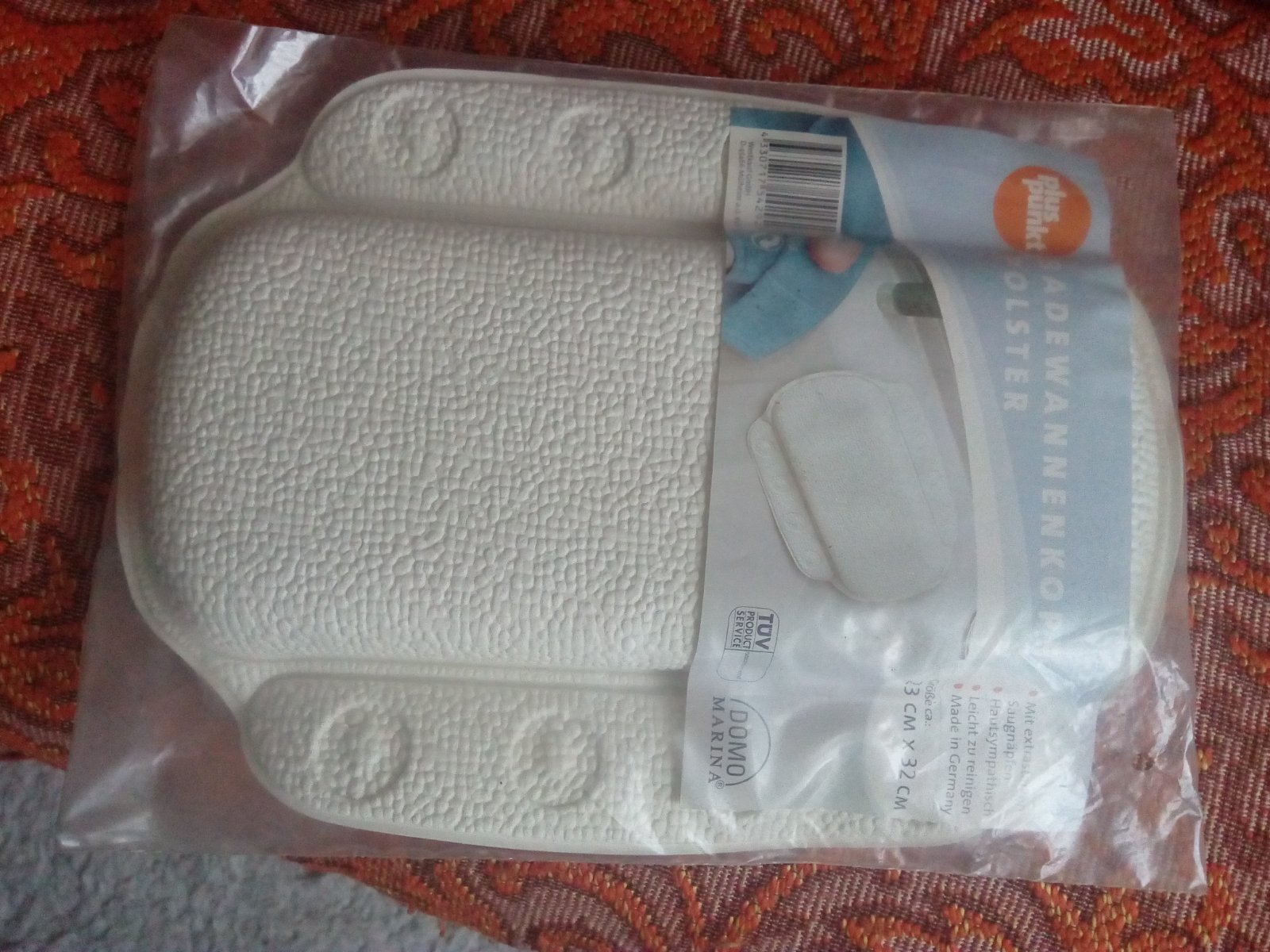 Mäkká umývateľná opierka do vane s rozmerom 32 x 23 cm. Je umývateľná má prísavky, ktorými sa pripevní na vaňu a pohodlne si opriete hlavu. Bola raz použitá, je bez poškodenia a bez známok používania , zabalila som ju do pôvodného obalu