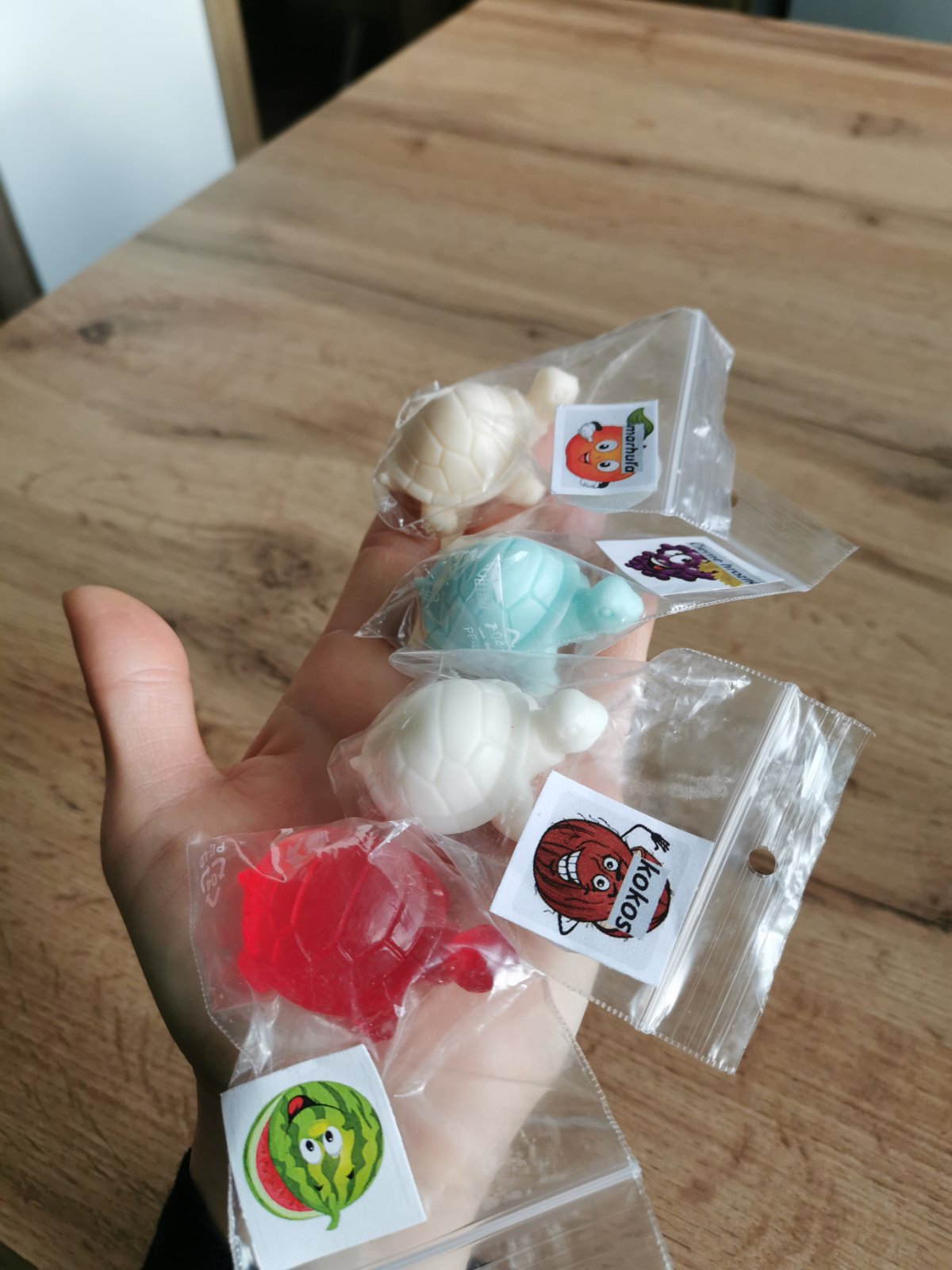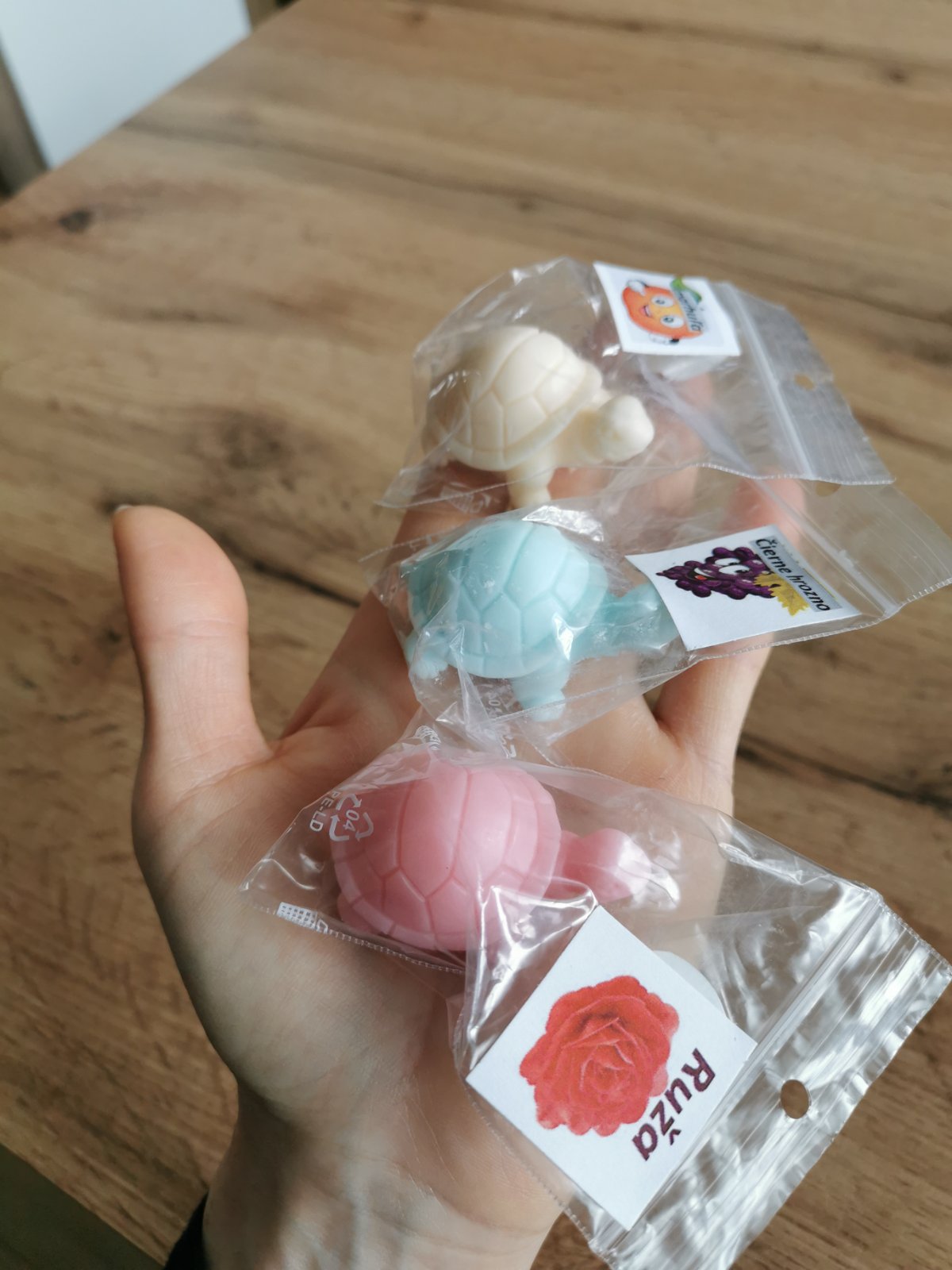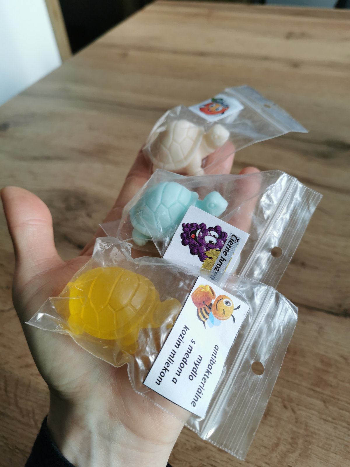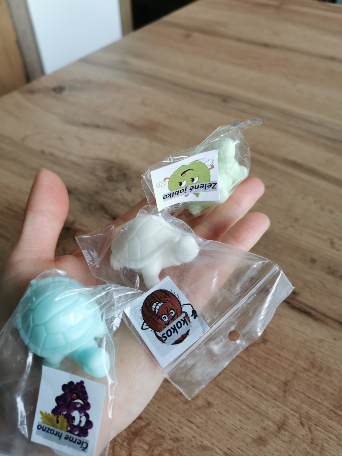 Kus za 0,40€. Vhodné aj ako darček pre deti do škôlky či školy pri oslave narodenín. Zloženie: mydlová hmota s kozím mliekom, esencia, prírodné farbivo. Posielam cez packetu. V prípade záujmu mám k dispozícii ďalšie mydlá, sviečky a liečivé krémy.