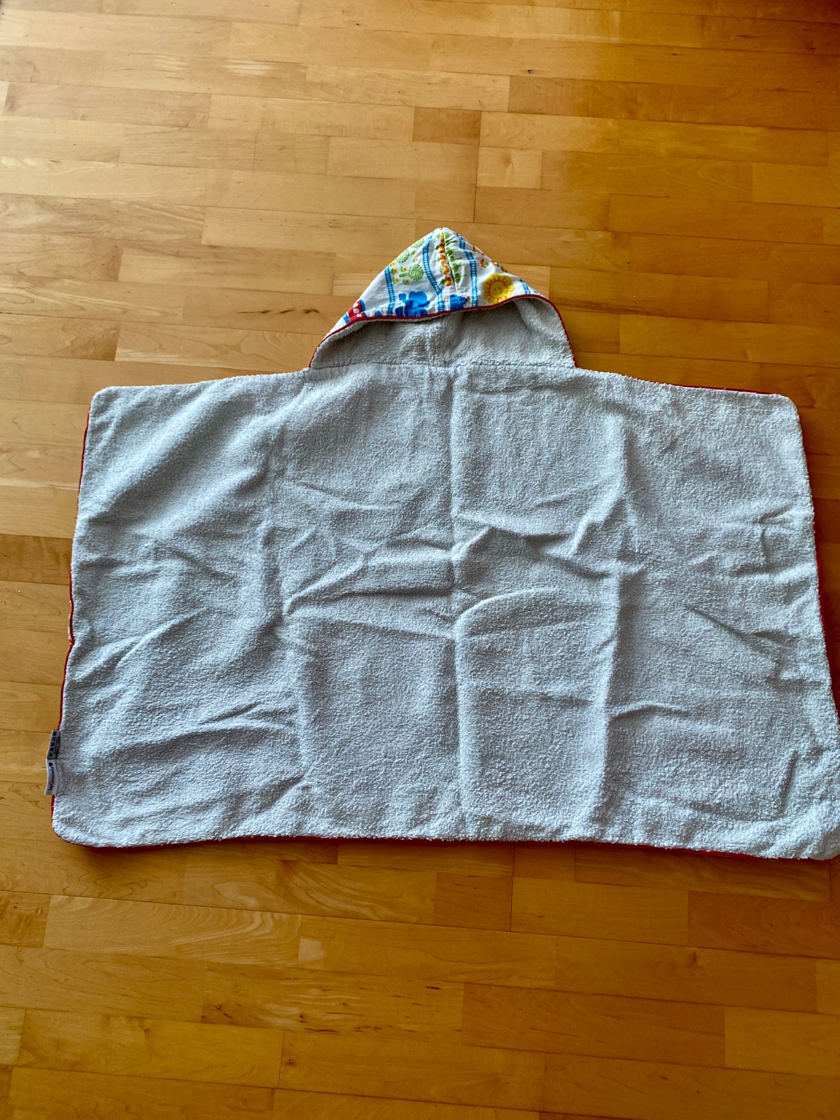Detská osuška s kapucňou. Krásny motív s vláčikmi, kvetinkami, slnkom. Rozmery 60x100. Používali sme ale stále plne využiteľné