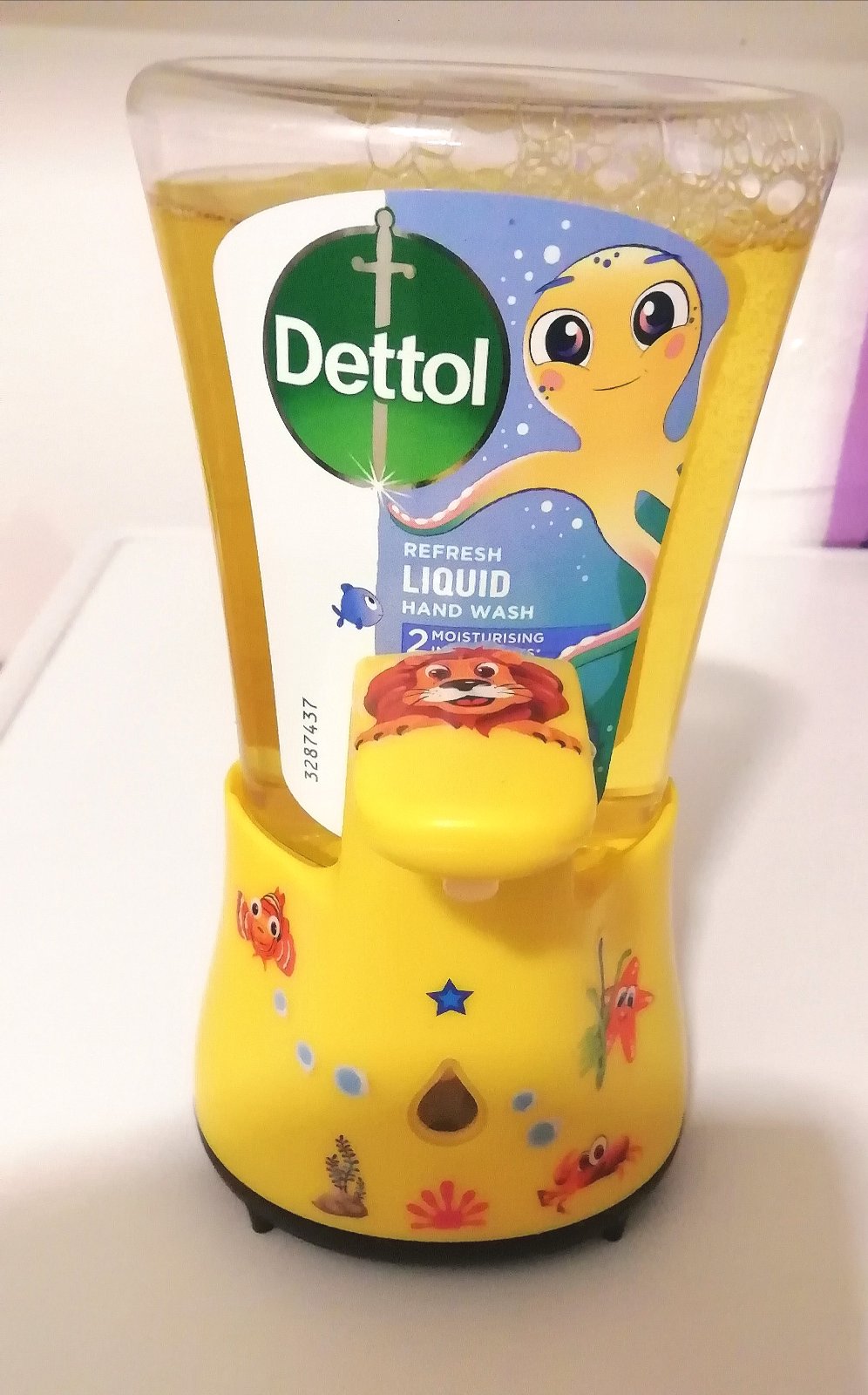 Automatický dávkovač tekuté mydlo Dettol s náplňou pre deti. Skoro ako nové s batérkami. Hotovo na používanie.