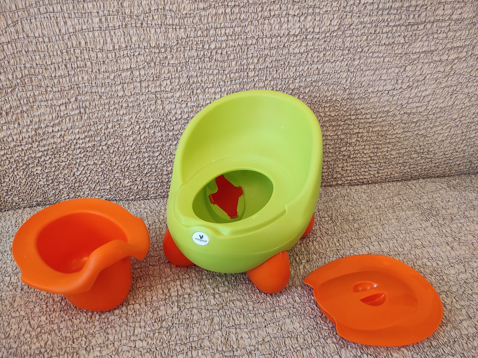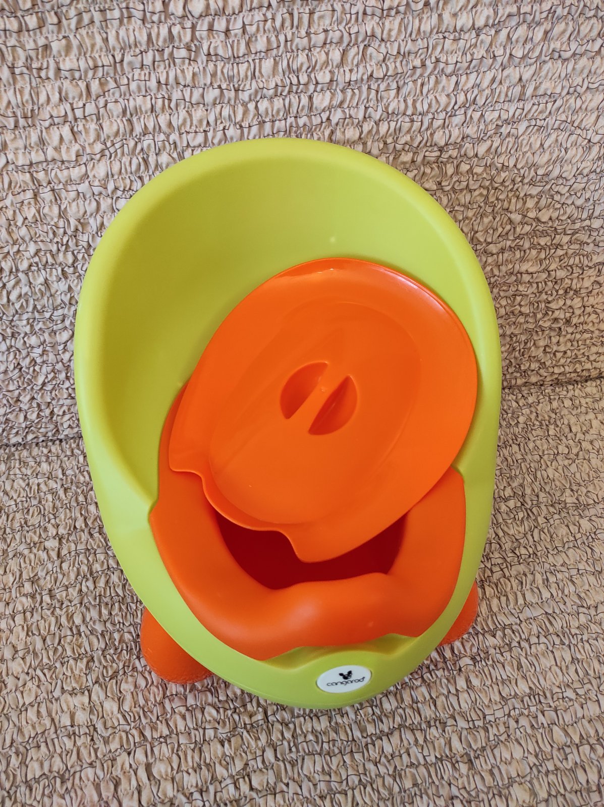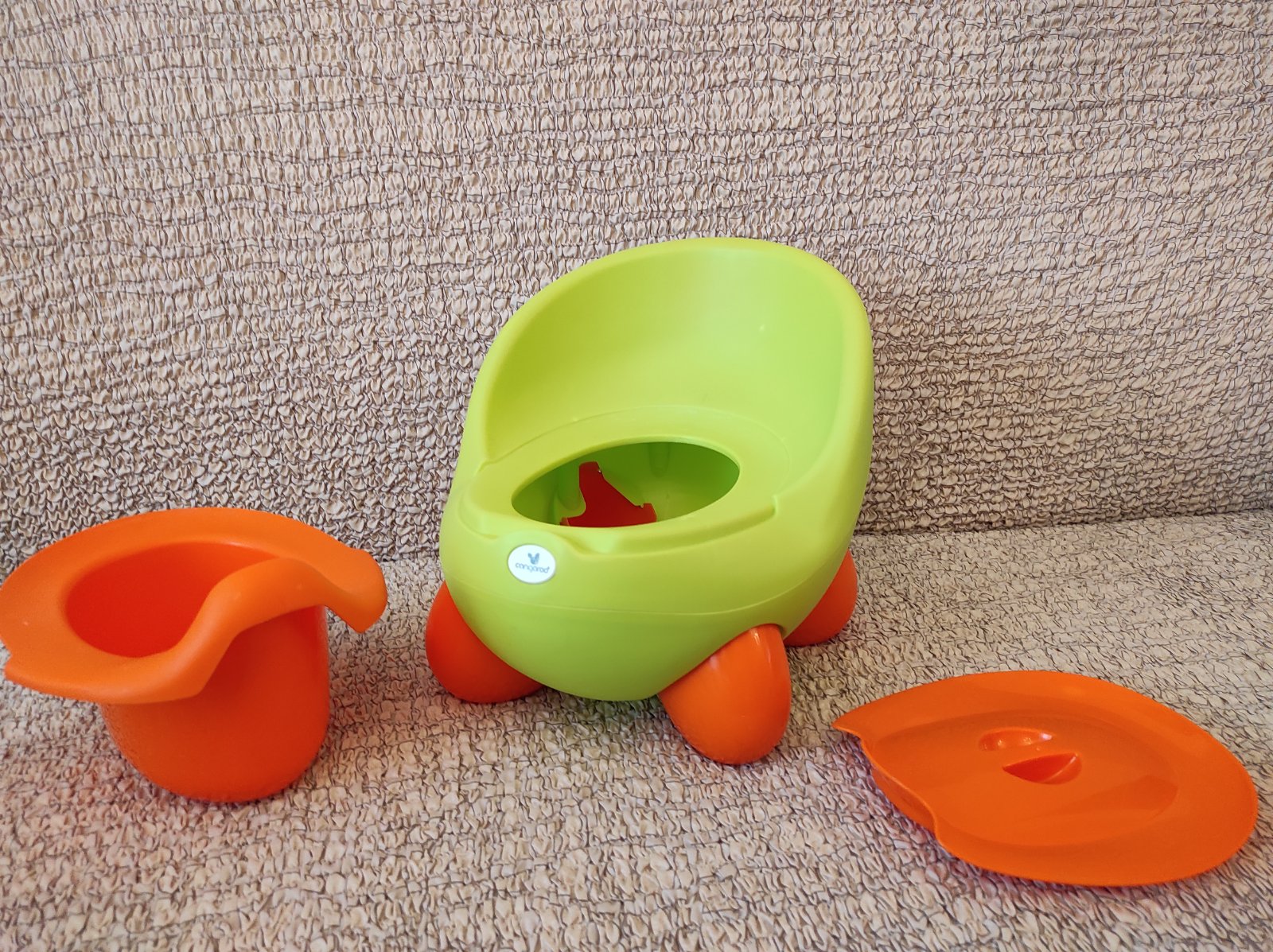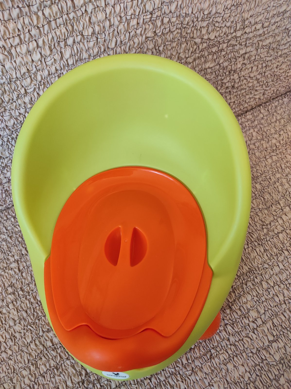 Nočník je stabilný. Dá sa vybrať vnútro, z ktorého je jednoduché vyliať obsach, a čistenie je takto jednoduchšie, že netreba celý nočník umývať, len tú časť. Dokonca aj vrch/veko má, ktorým sa dá zakryť.