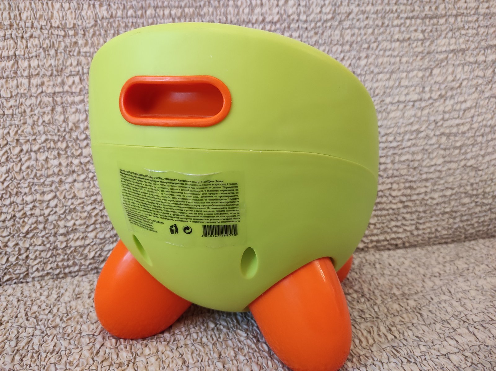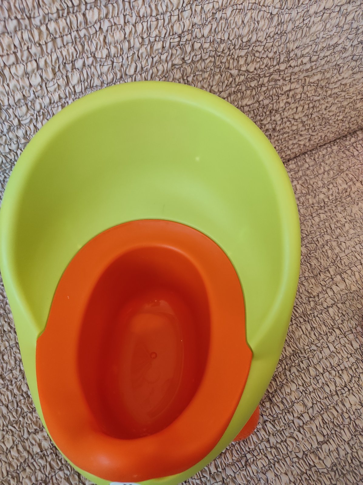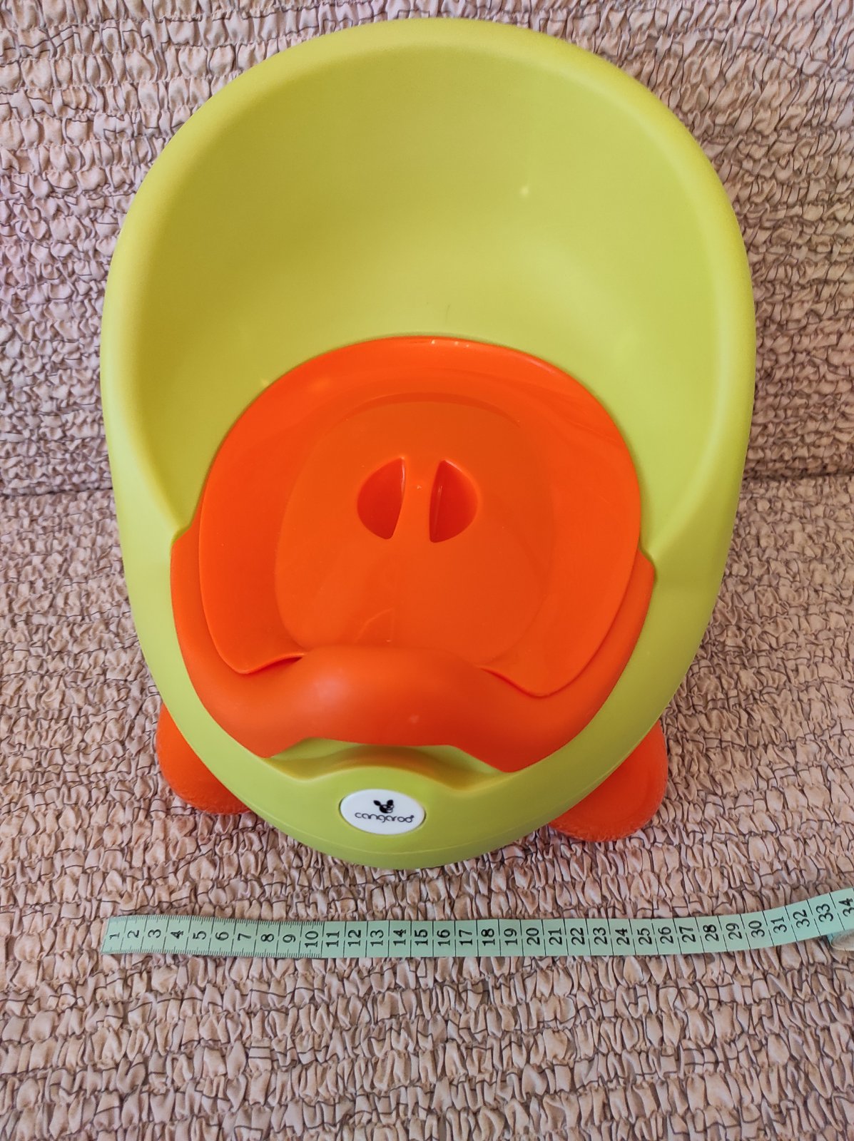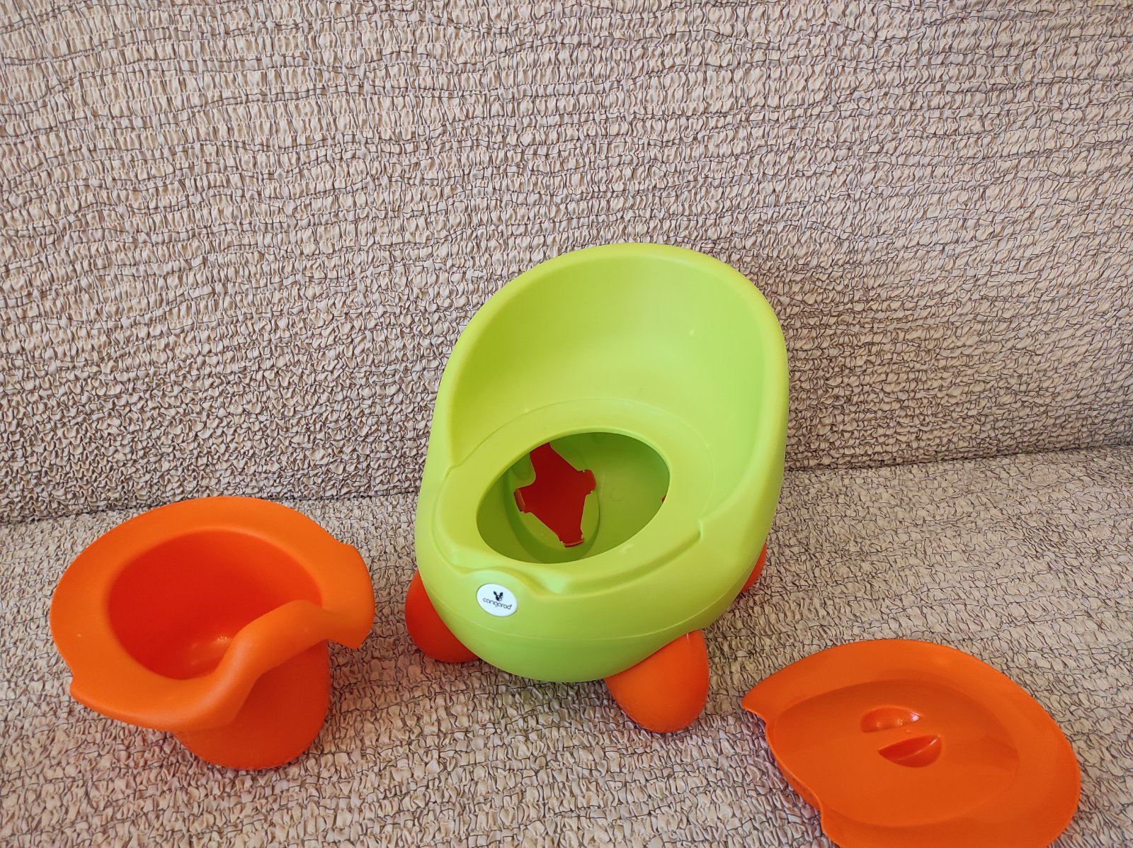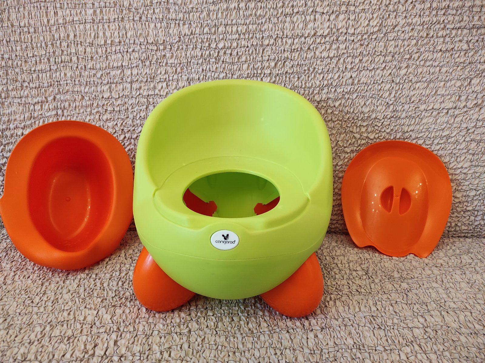 Nočník je stabilný. Dá sa vybrať vnútro, z ktorého je jednoduché vyliať obsach, a čistenie je takto jednoduchšie, že netreba celý nočník umývať, len tú časť. Dokonca aj vrch/veko má, ktorým sa dá zakryť.