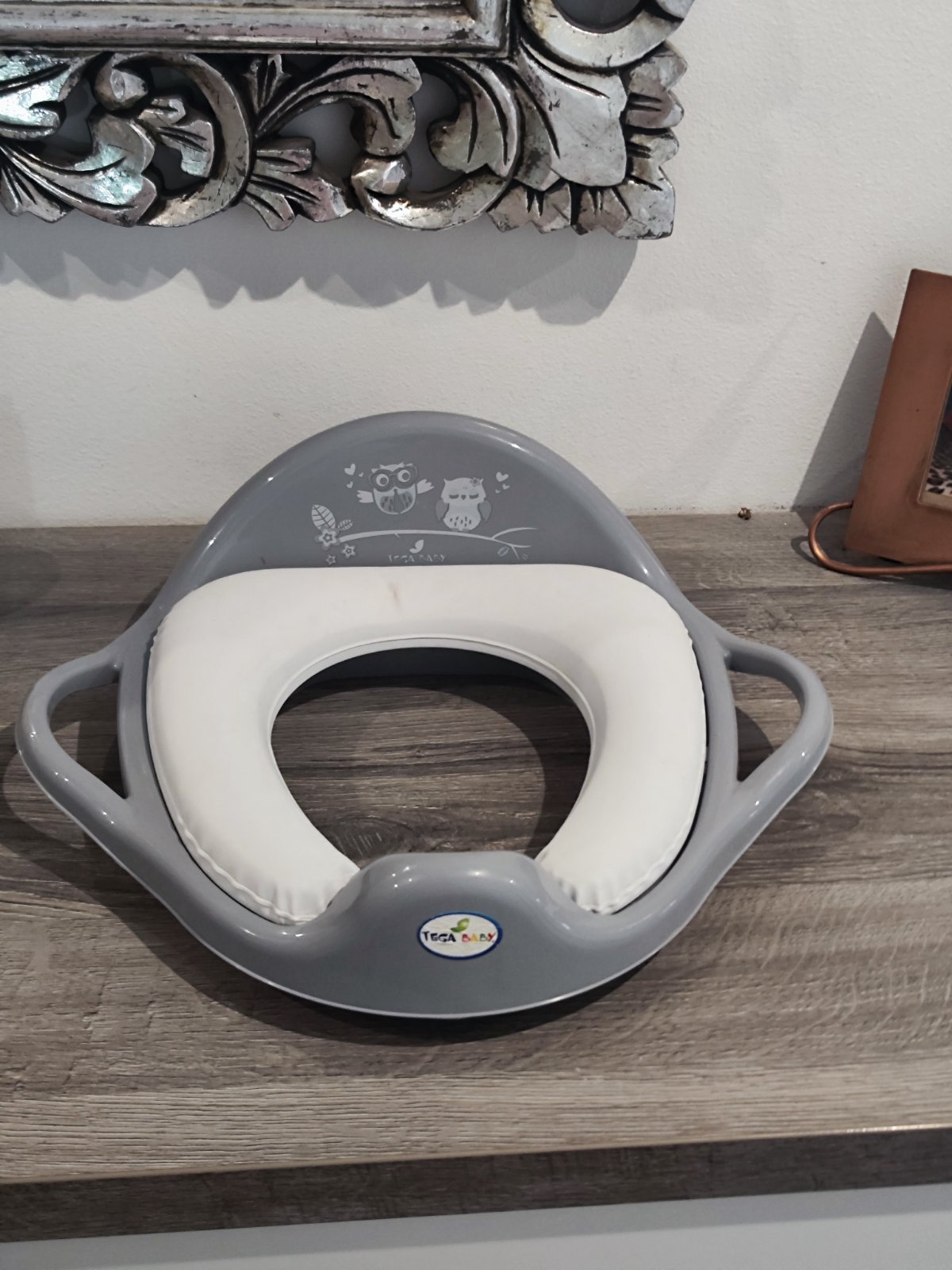 Použité málo. Super stav. Pôvodná cena 20€ . Šedý plast. Biela mäkká časť - sedátko