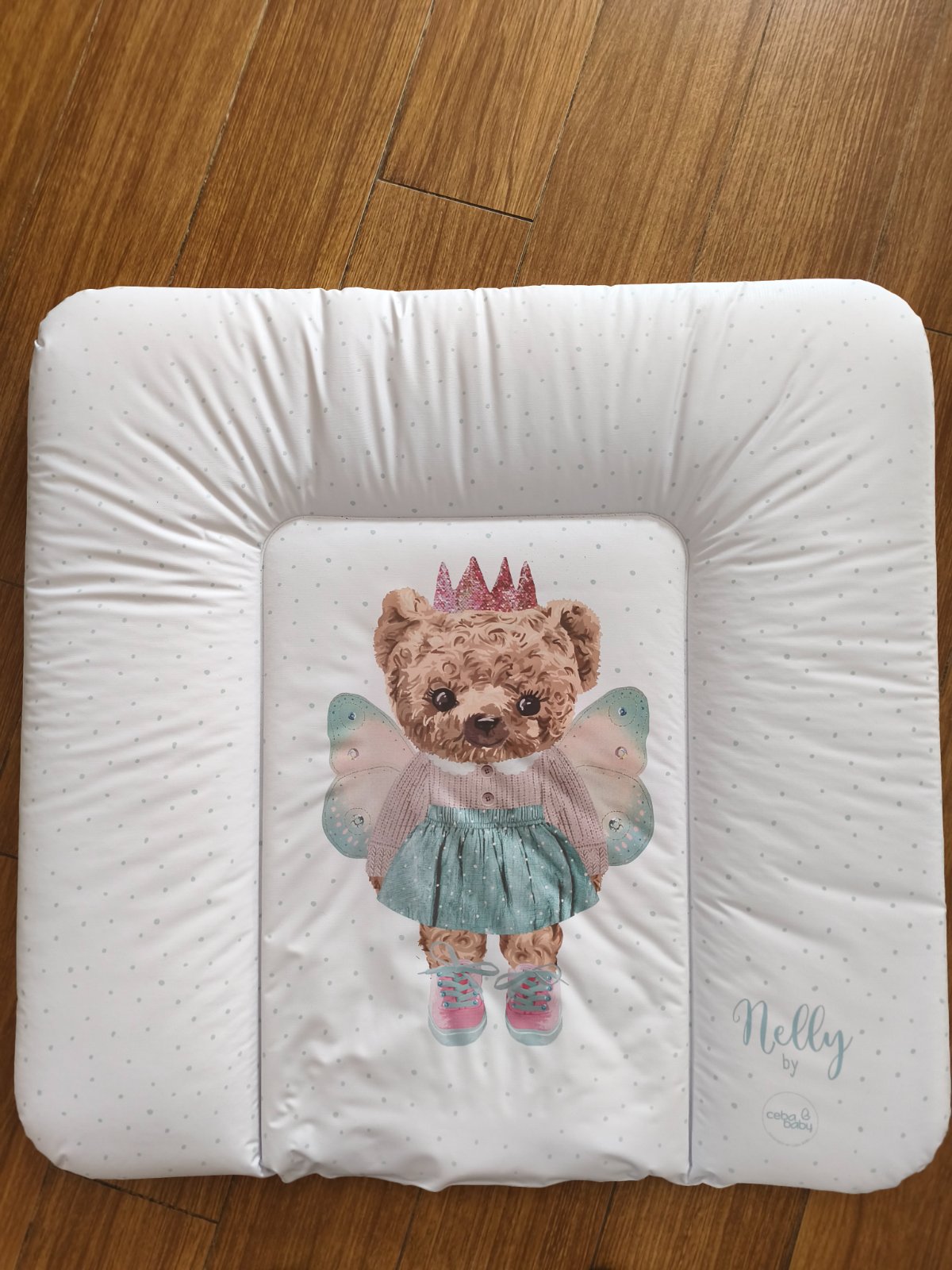 Prebaľovacia podložka. Rozmery šírka 47 dĺžka 70 Na spodnom rohu jemné poškodenie.