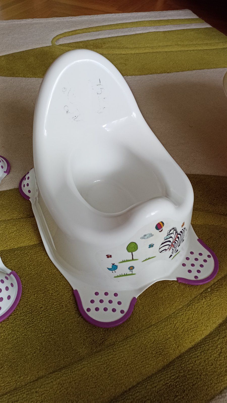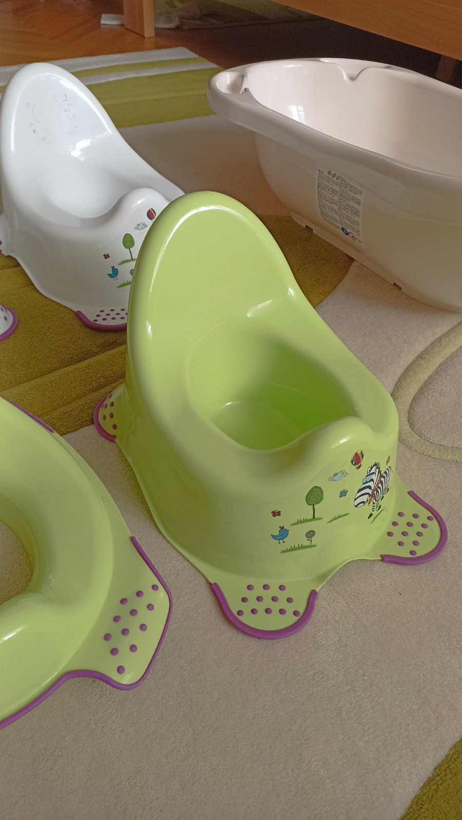 Ponúkam na predaj vaničku na kúpanie s výpustom - ako nová cena 10 Eur, redukciu na WC 4 Eur, nočník 5 Eur/kus, dvojstupienok 9 Eur. Najlešpie osobný odber.