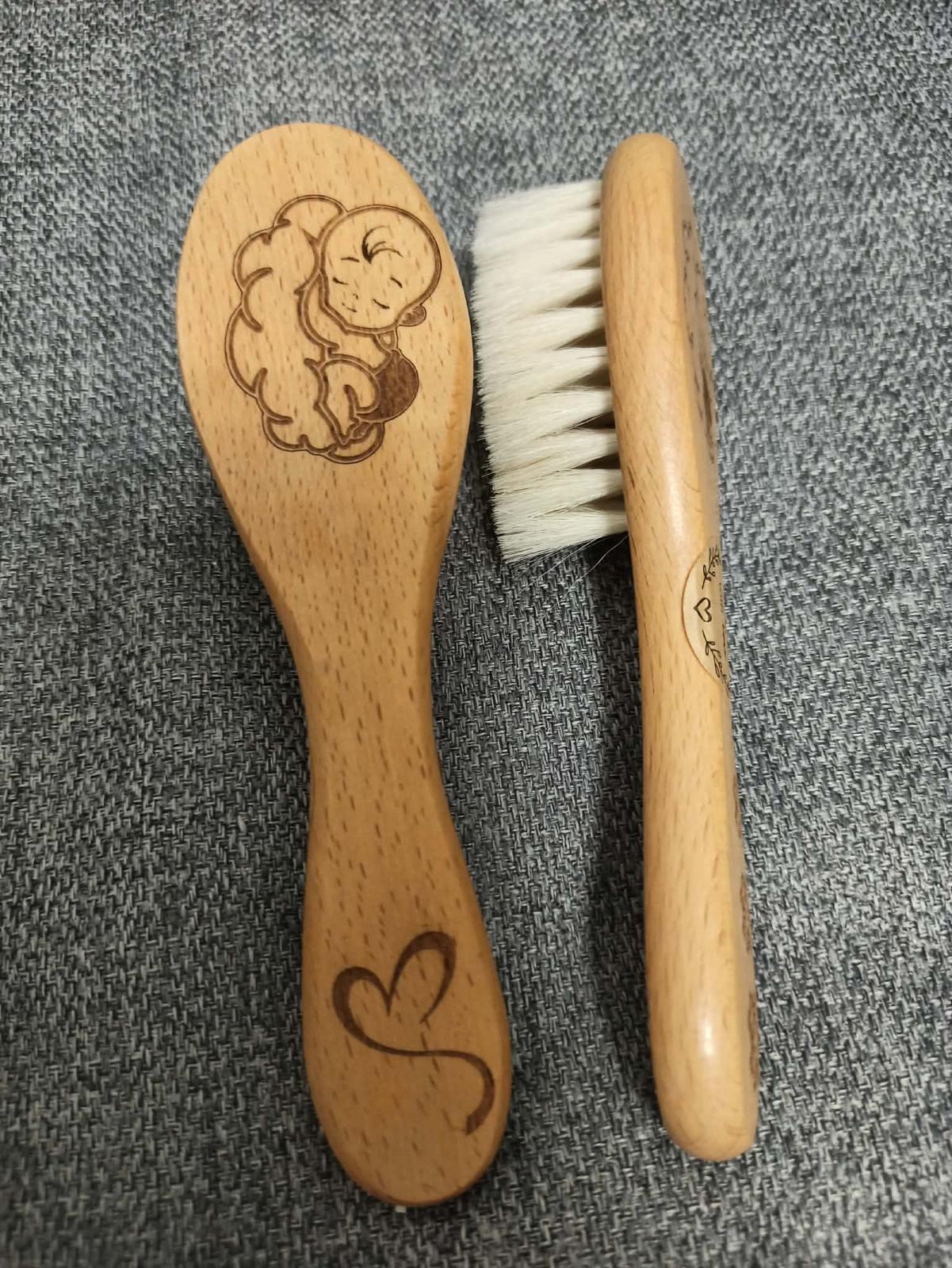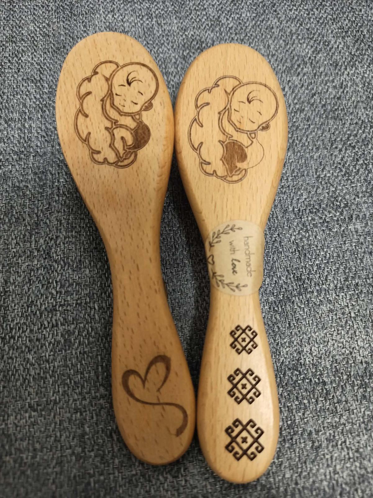 Krásne kefky na vlásky pr bábätko z lipového dreva,motív vypalený laserom.Krásny darček pri narodení,krstiny....Už len 1ks,so srdiečkom predaná