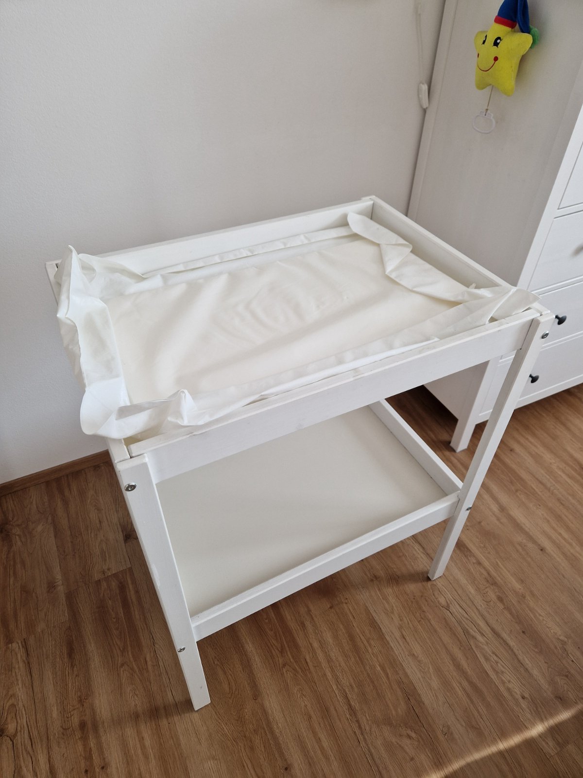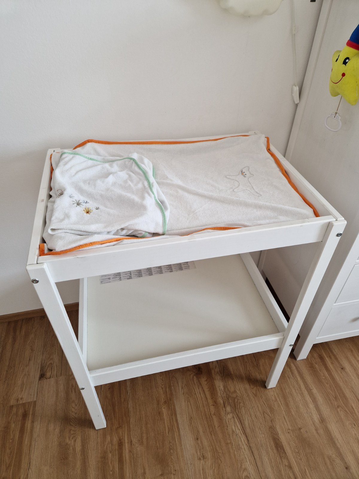 Predam set prebalovaci pult Ikea v bielej farbe + 1podlozka + 2potahy. Osobny odber.
