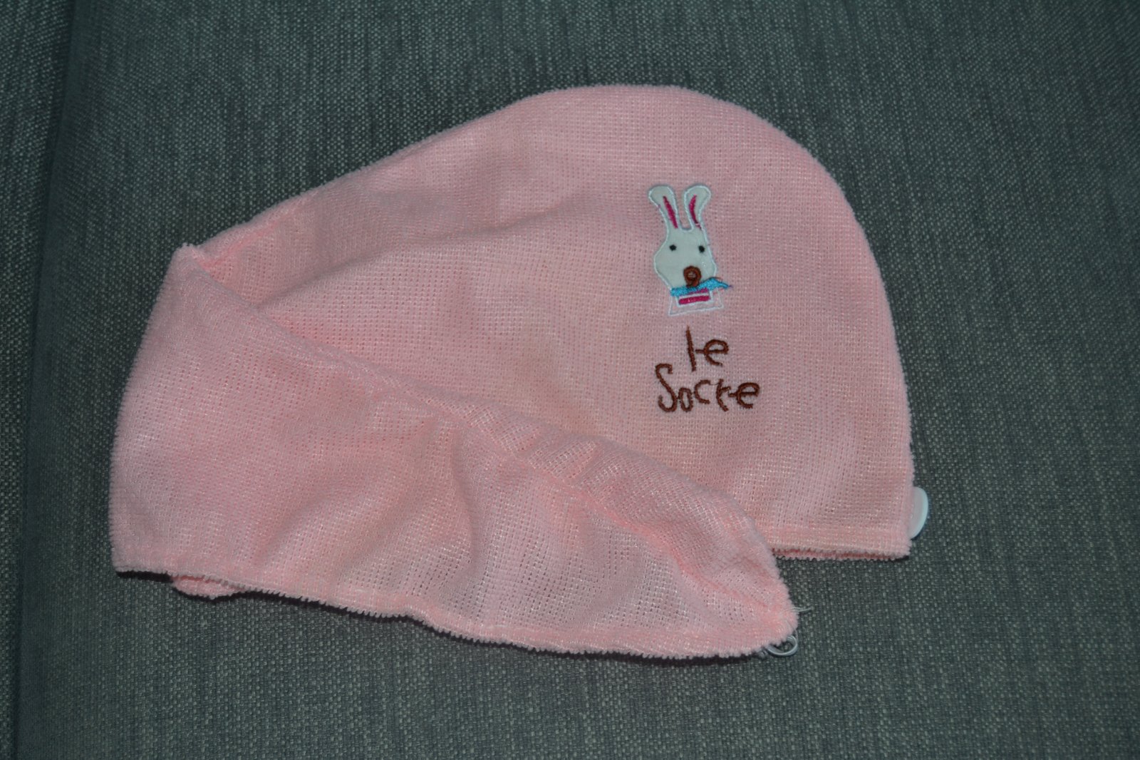 Špeciálny turban z mikrovlákna na mokré vlasy ružovej farby s detským obrázkom