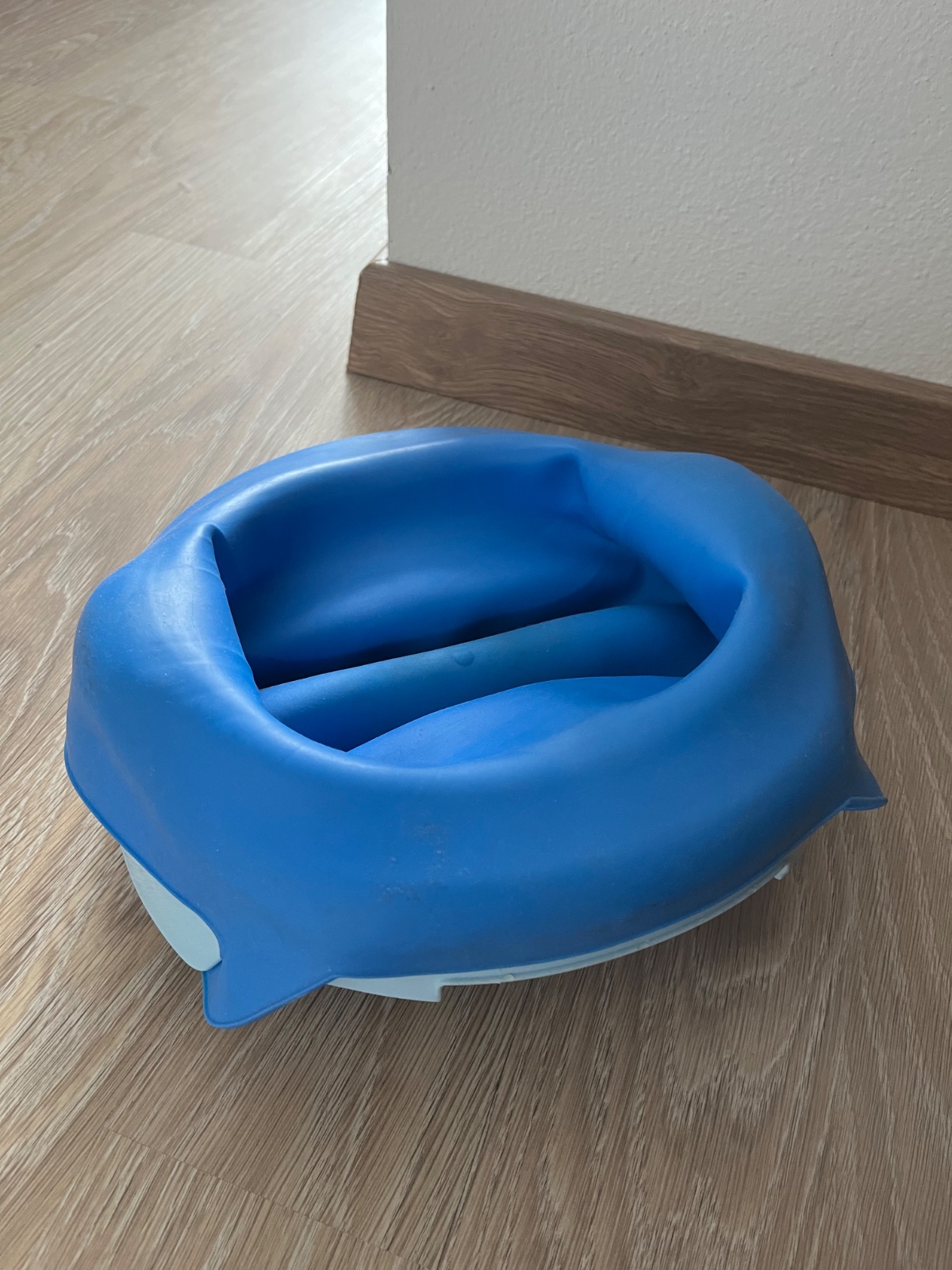 Skvelý skladací nočník Potette plus. Zložený je veľmi skladný, bez problémov do ruksaku. Dá sa použiť aj ako redukcia na WC.