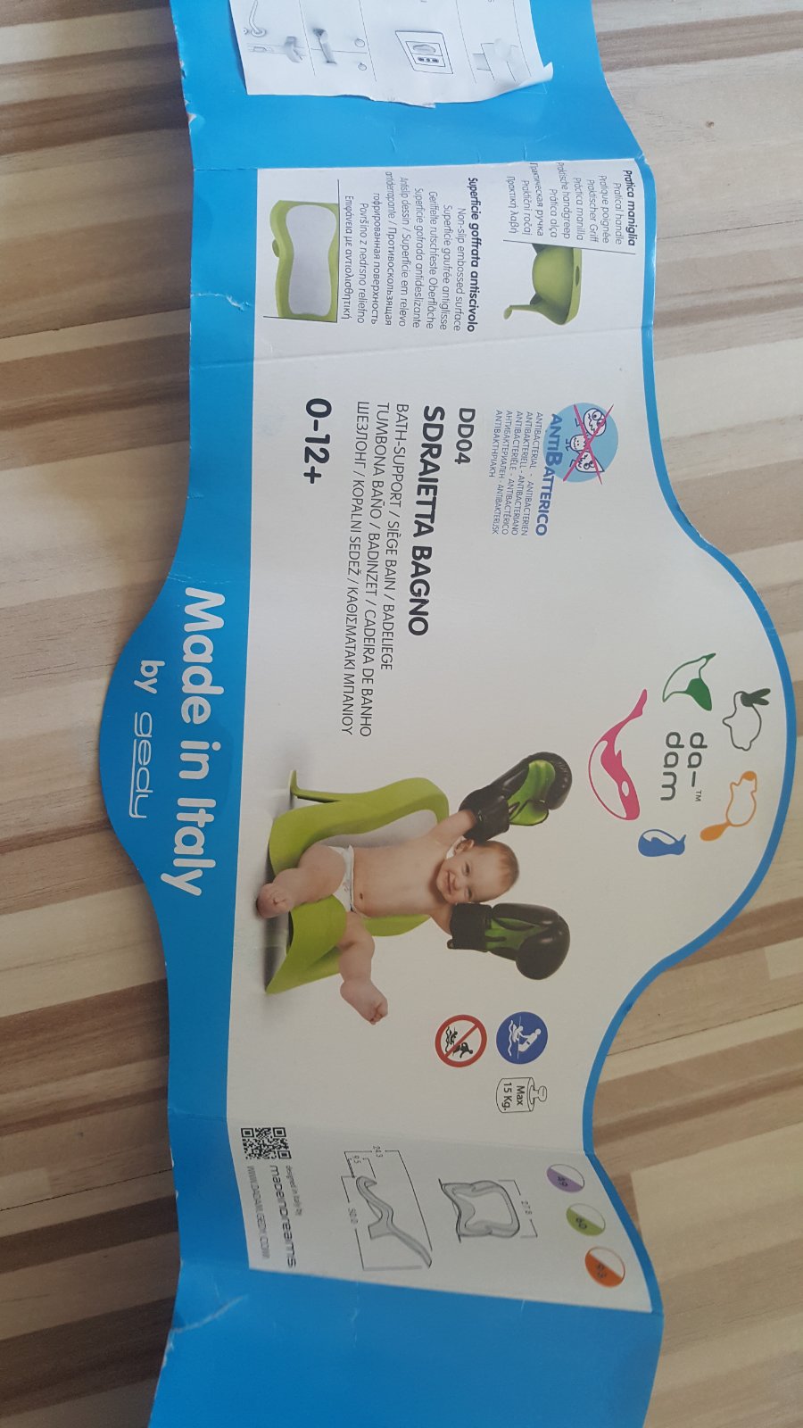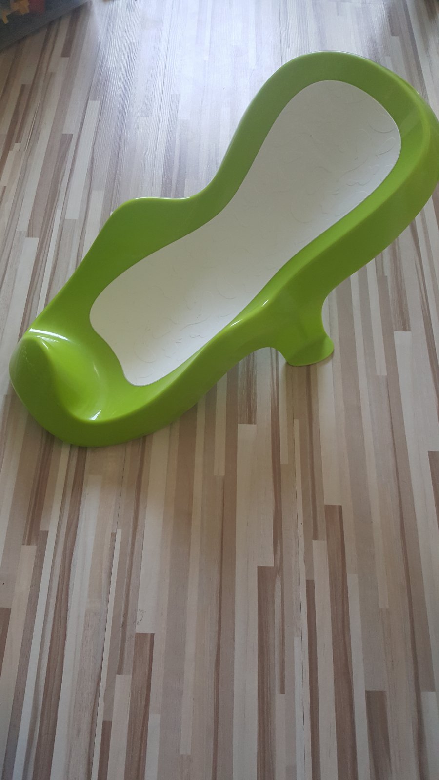 Lehatko do vane Da-dam zeleno-biele. Vhodný pre deticky od narodenia do 1 roka, do váhy max.15 kg. Je málo používané, nie je poškodené, ani doškriabané, ani zlomené.