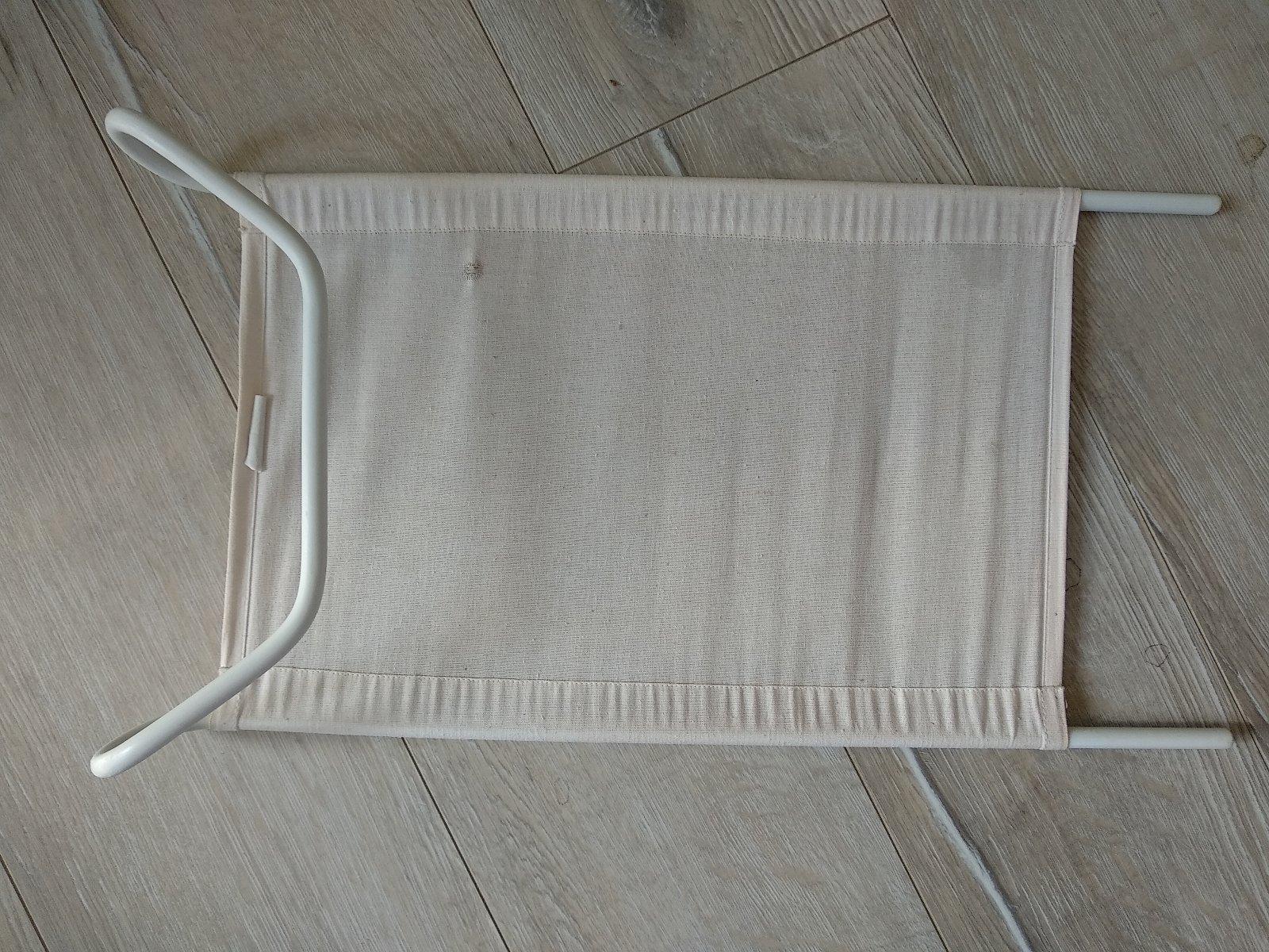 Pevná podložka pre bábätko počas kúpania.Ma pevnú kovovú konštrukciu a príjemné platené lehátko,kde cíti bábätko istotu.Je po 1 dietati,na jednom mieste jemne rozparane o veľkosti 3mm,dá sa ľahko zašiť. Plátno je 100percentna bavlna a dá sa prať pri 60 stupňoch.