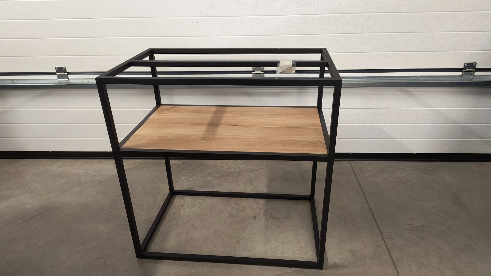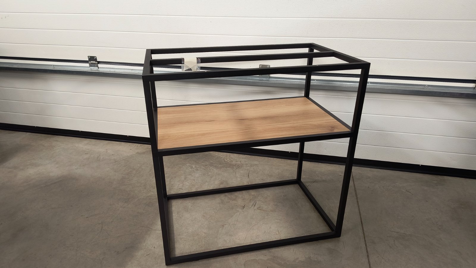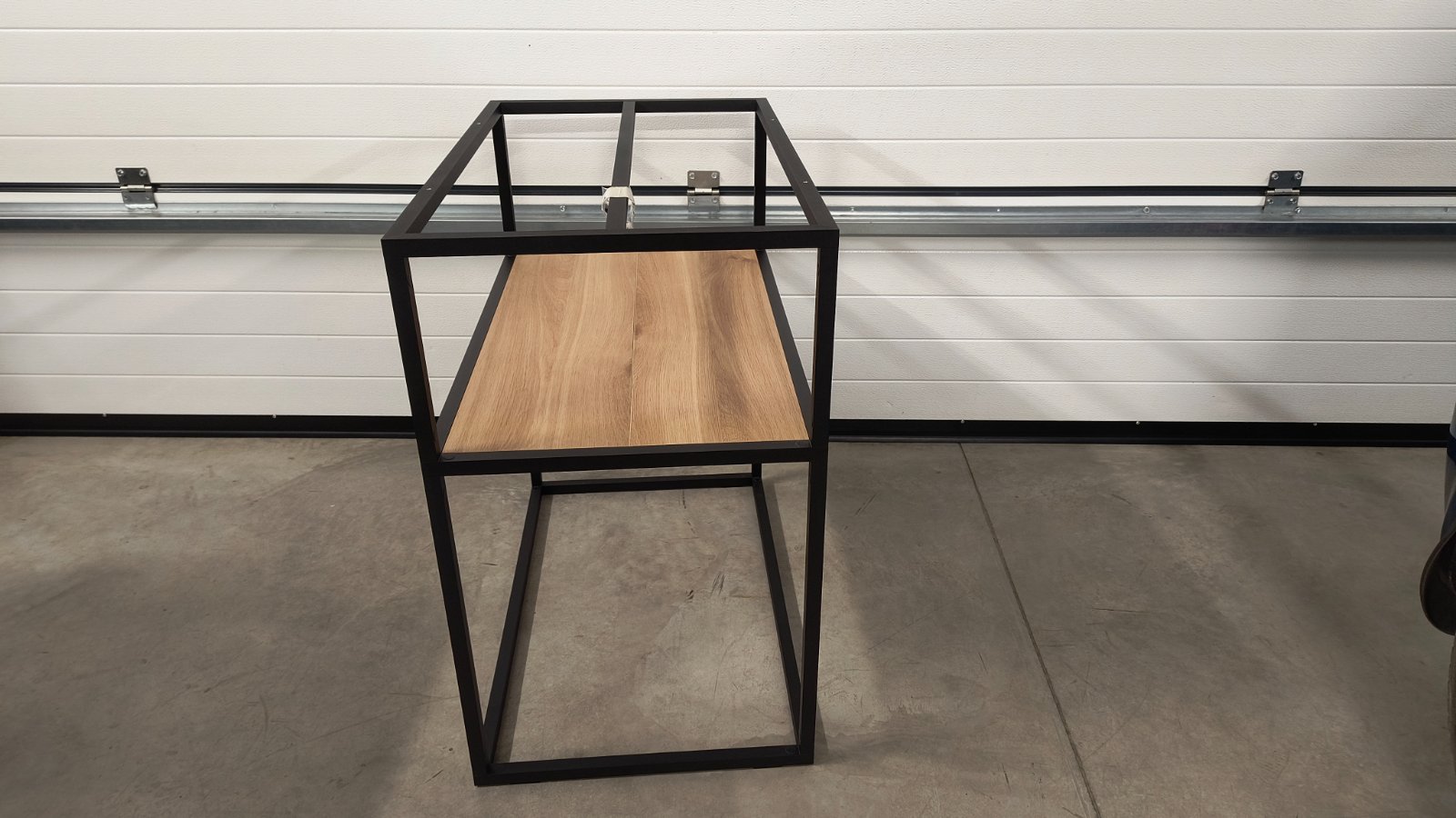 Predam prebaľovaci pult vyrobený na zákazku z hliníkových profilov 20x20mm, rozmer pultika je 50x80cm. Pultik má čiernu matnú farbu s jemnou štruktúrou, políčka je z klasickej 18mm laminovanej drevetriesky, odtieň je prírodný dub.l, polička je vymeniteľna, takže si ju môže každý vymeniť aby mu dekor pasoval do domácnosti.