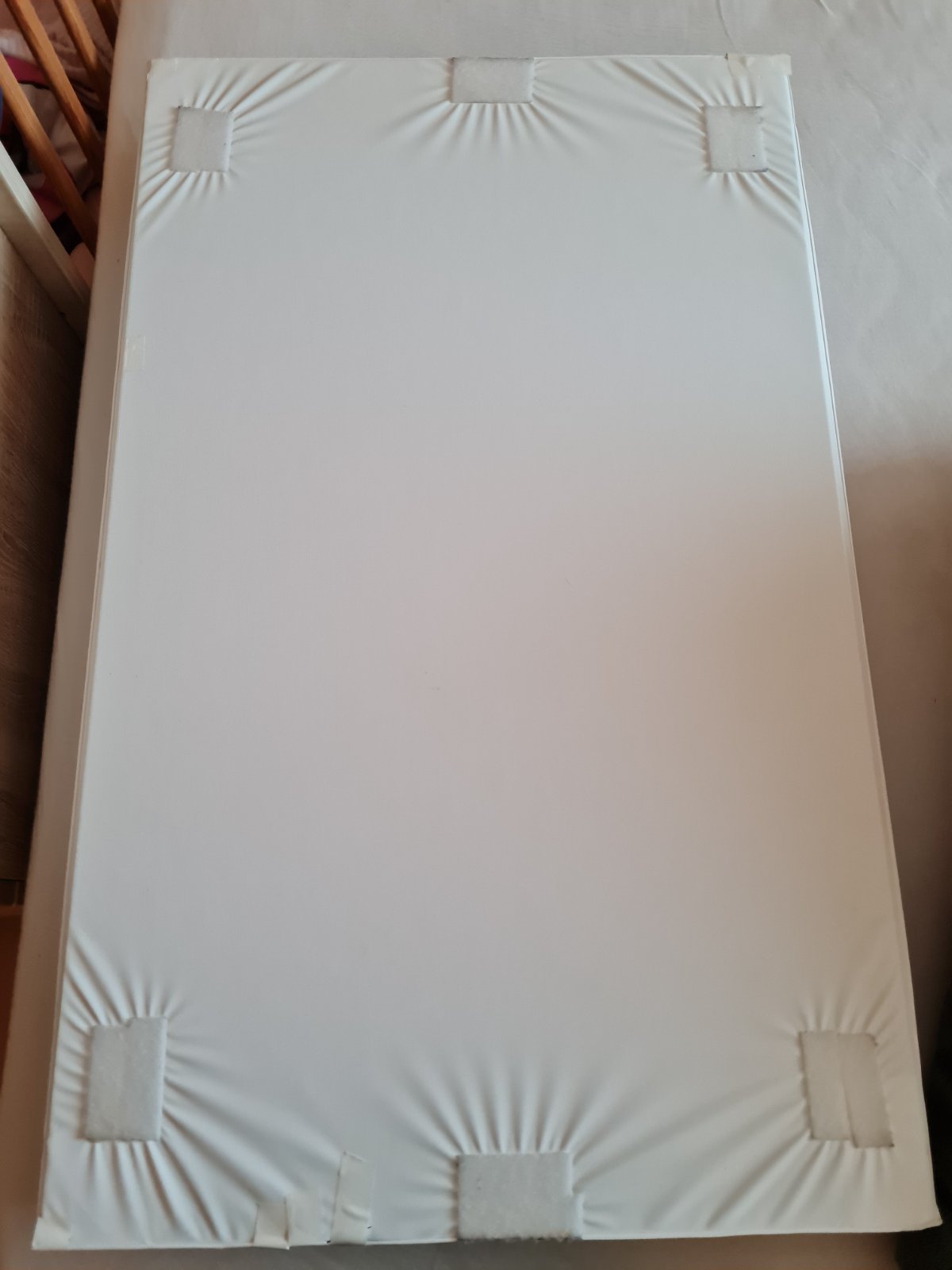 Predám pevnú prebaľovaciu podložku. Niekde je lepená. Má aj suchý zips. Široká 50 cm a dlhá 80 cm