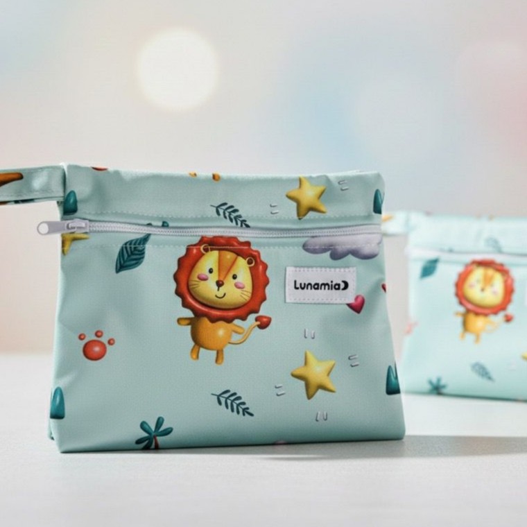 Taštička je skvelá, hlavne ak si mimo domu a potrebuješ si svoje nohavičky Lunamia vymeniť. Jednoducho si z nej vyber čisté a daj do nej použité. Taštička neprepúšťa tekutiny ani pachy, a tak ti diskrétne a elegantne pomáha počas tvojich dní.