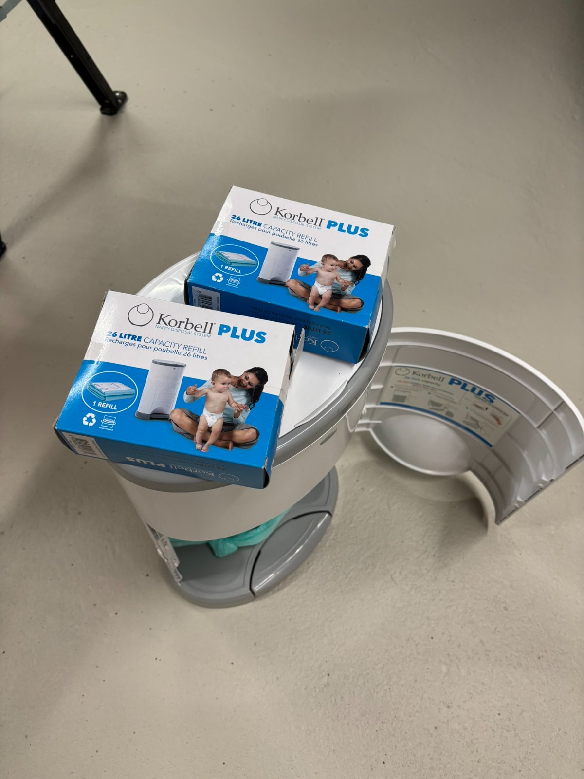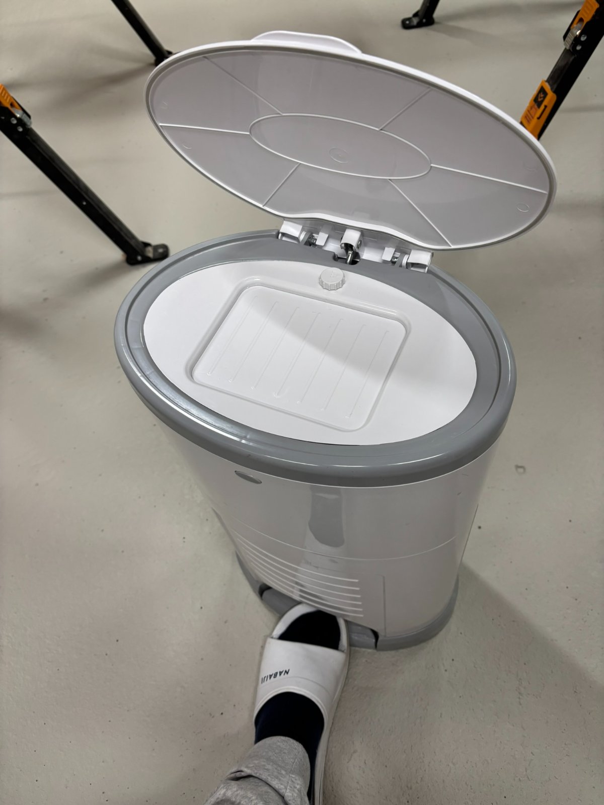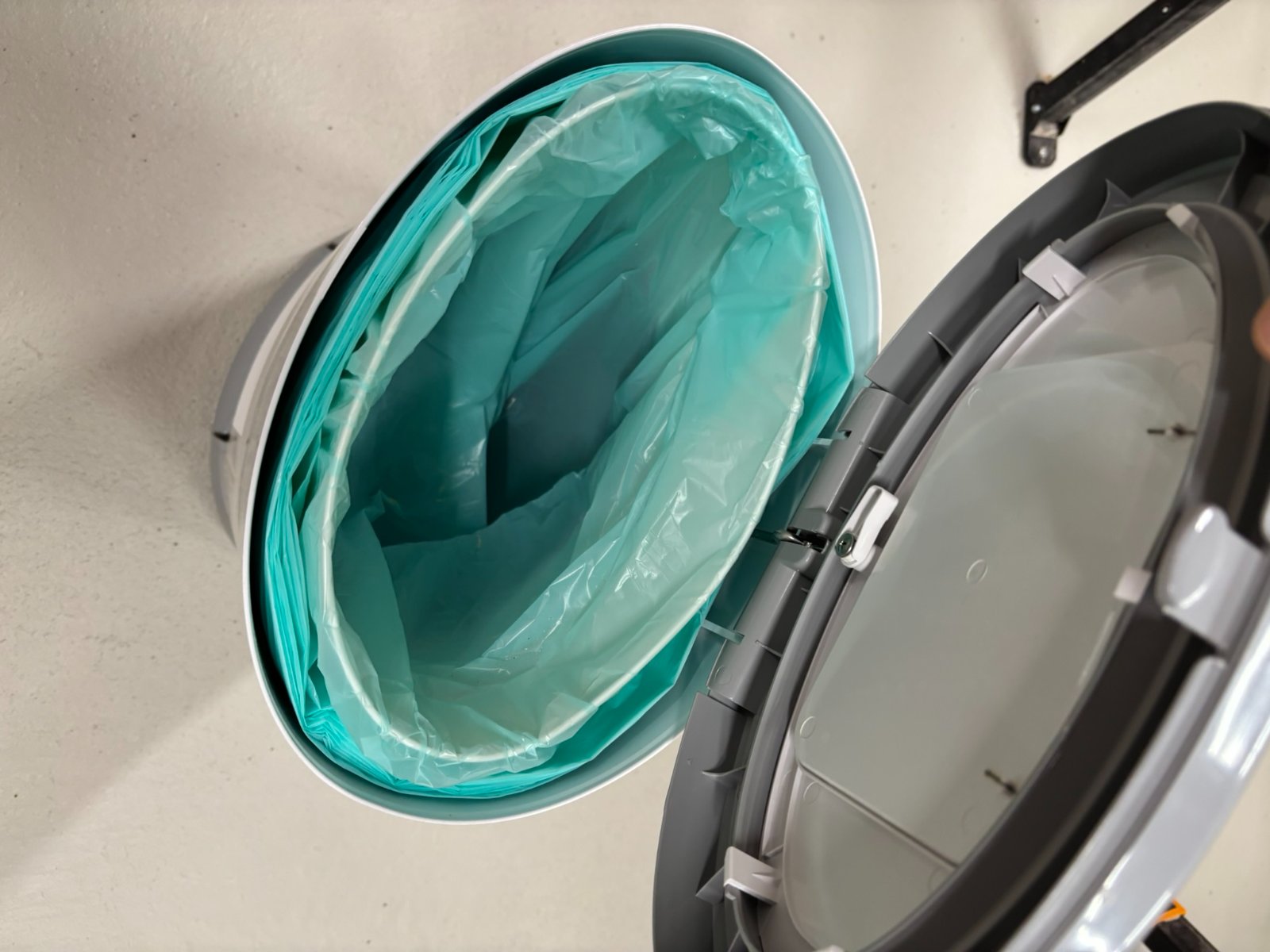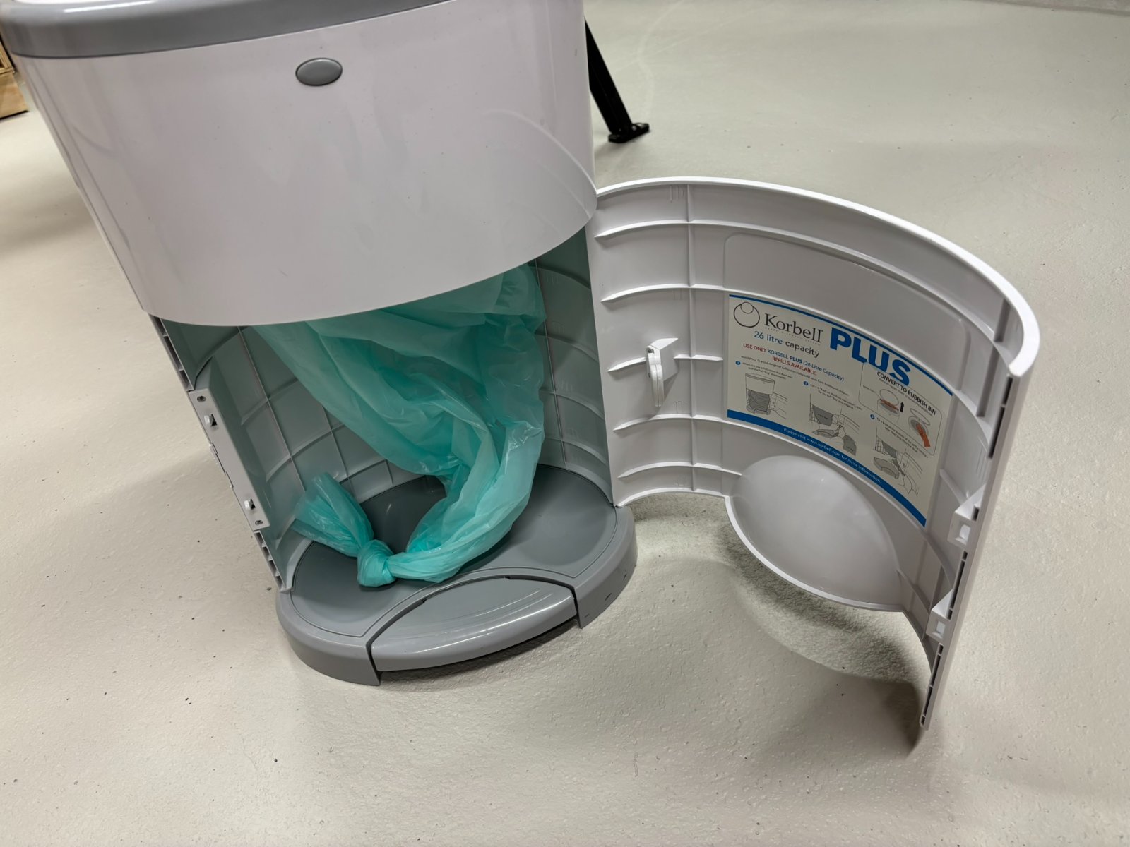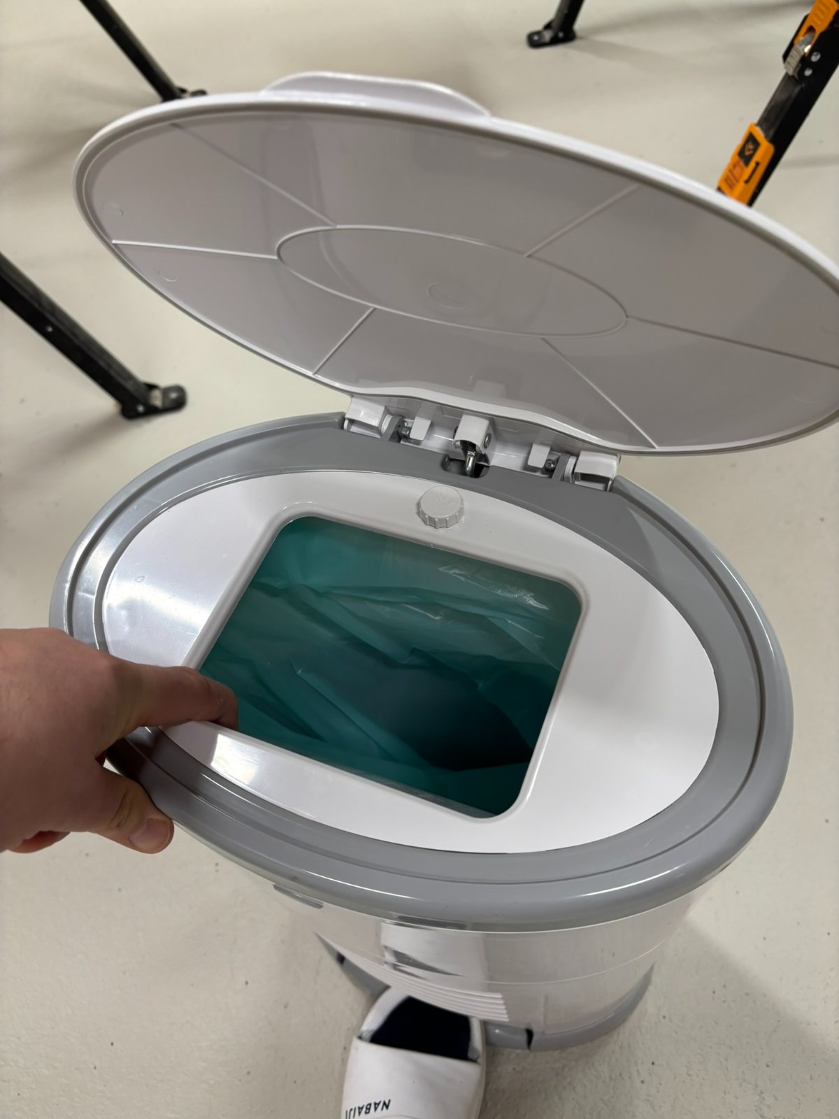 Kos na plienky spinave plienky - bezdotykovy, uzamykatelny. Dvojity dekel zabezpeci ze spinave plienky nesmrdia do okolia. Obsahuje nekonecny sacok ktory po naplneni staci uzavriet a vyhodit.