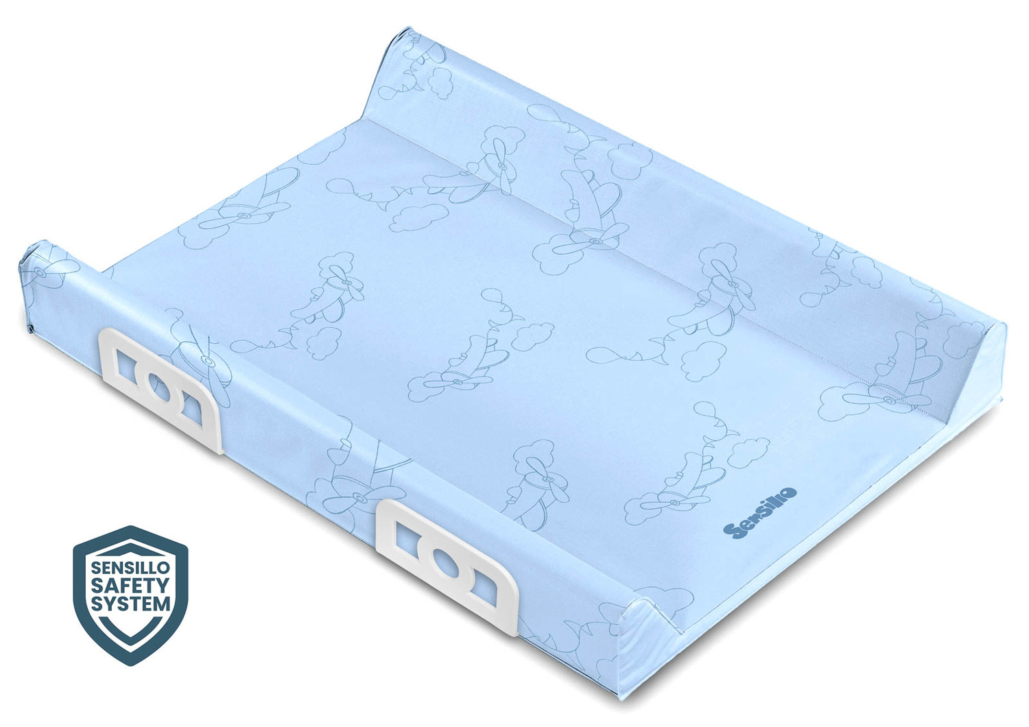 Polstrovaný prebaľovací pult Sensillo s veselými potlačami bol pripravený s myšlienkou na pohodlnú starostlivosť o najmenších. Nožičky zahrnuté v súprave umožňujú bezpečnú a stabilnú inštaláciu priamo na postieľku so šírkou 60 cm. Prebaľovací pult je možné namontovať aj na komodu alebo iný stabilný povrch. Prebaľovací pult sa vyznačuje inovatívnym bezpečnostným systémom Sensillo Safety System, ktorý zabraňuje vypadnutiu dieťaťa vďaka dodatočným bočným výstuhám. Na výrobu sme použili najkvalitnejšie materiály zaisťujúce maximálnu bezpečnosť a komfort používania. Olejová handrička, ktorou je prebaľovací pult Sensillo prekrytý, je úplne bezpečná pre zdravie dieťaťa - neobsahuje ftaláty, ťažké kovy a iné škodlivé látky.