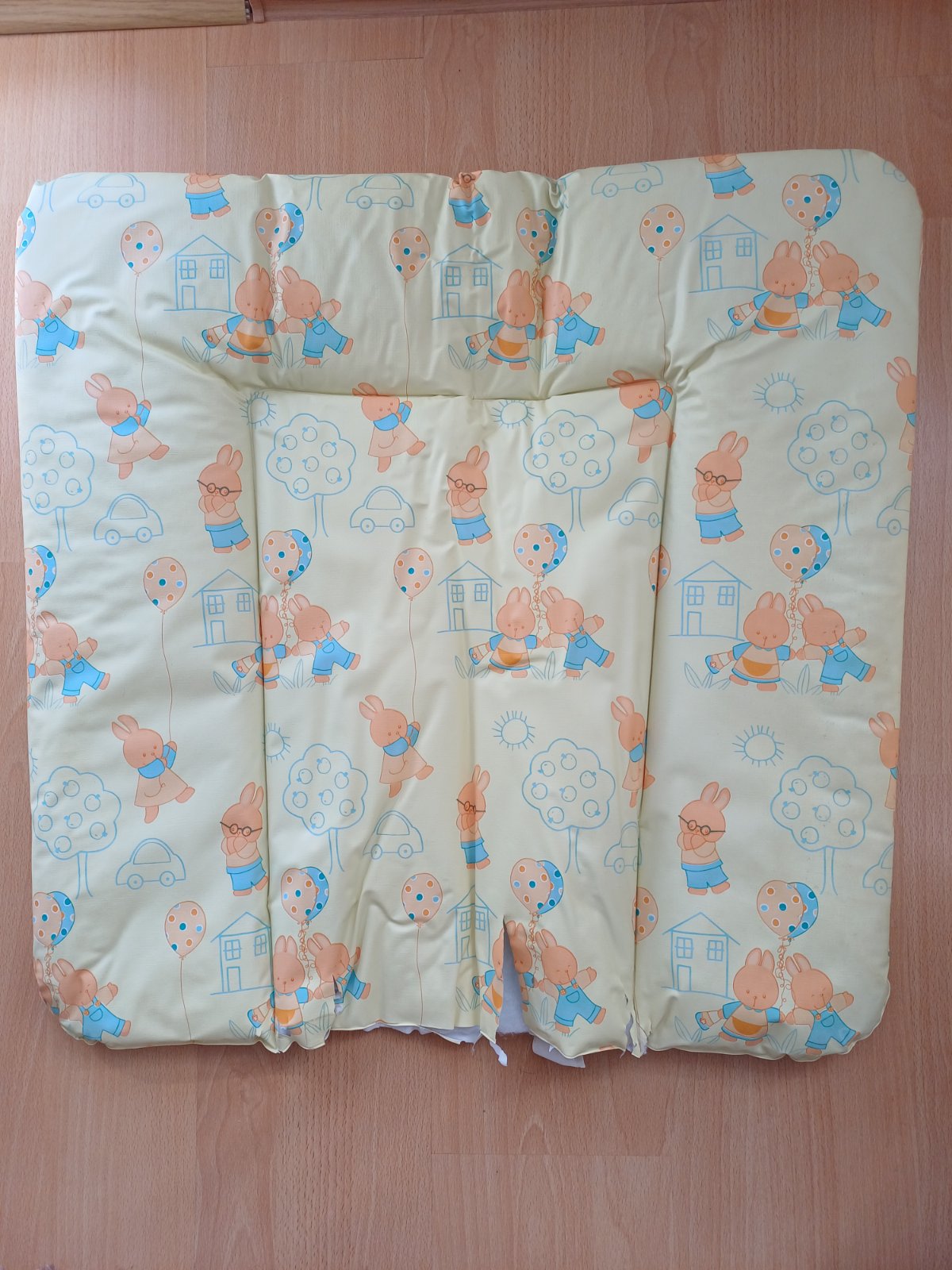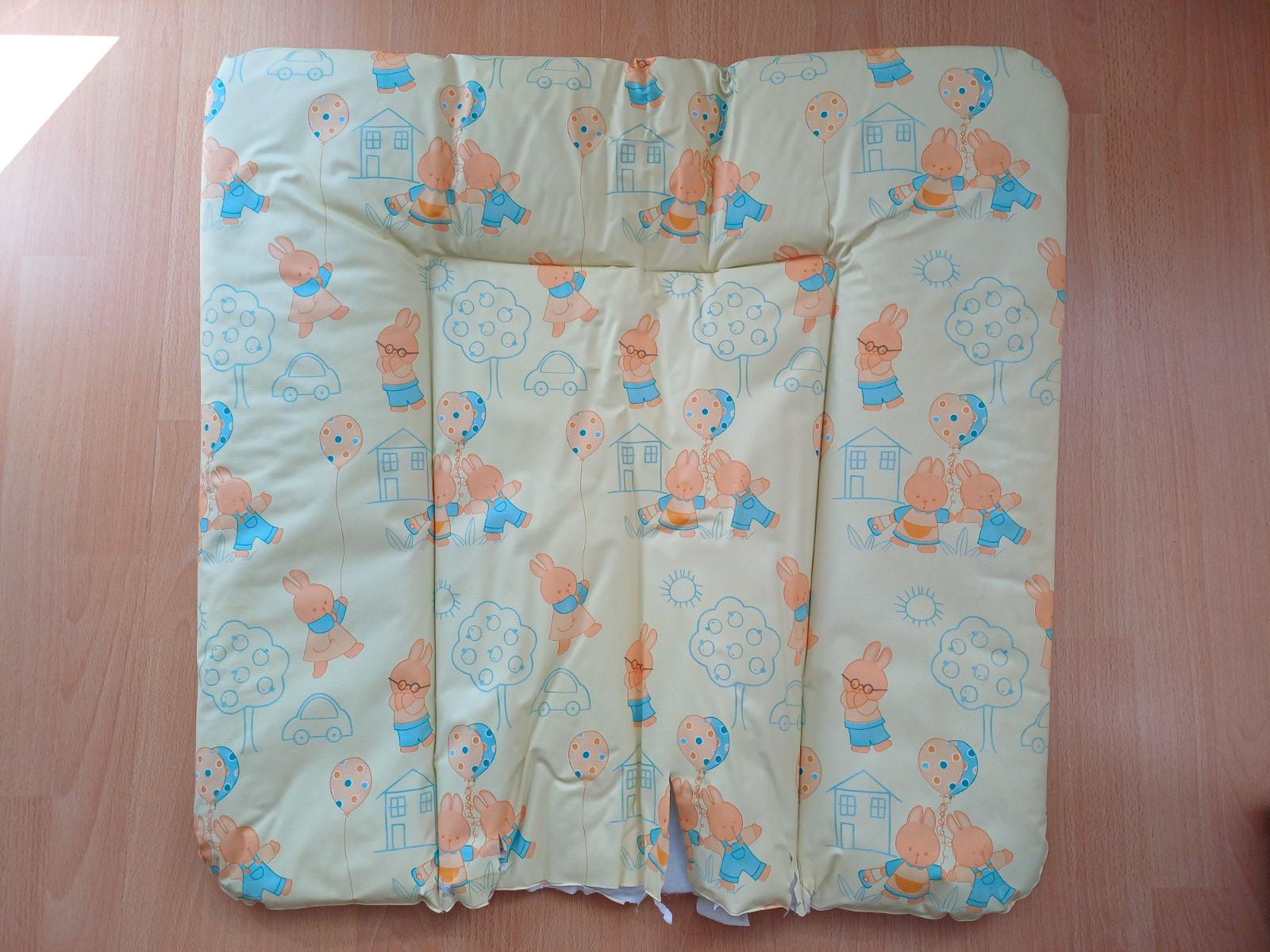 Predám prebaľovaciu podložku rozmer 73x73cm, nepremokavá, ľahko umývateľná, spodná časť popraskaná viď foto.